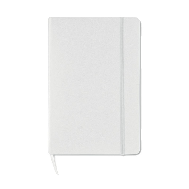 Carnet de notes A5 avec couverture rigide en PVC. 192 pages quadrillées (96 feuilles en papier recyclé). Fermeture par bande élastique assortie.