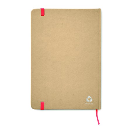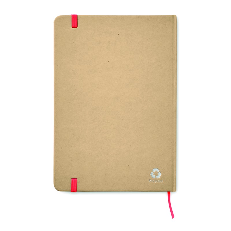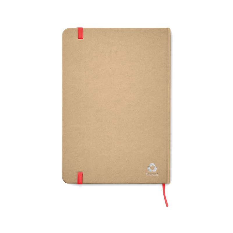 Carnet A5 avec couverture rigide en carton recyclé. 160 pages lignées (80 feuilles en papier recyclé). Bande élastique de fermeture et ruban marque-page. FSC®-certified | FSC MIX CREDIT, P7.1, FSC-C213206