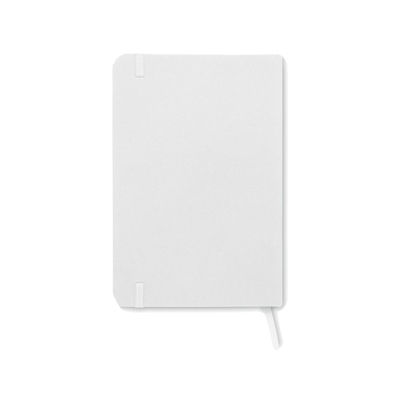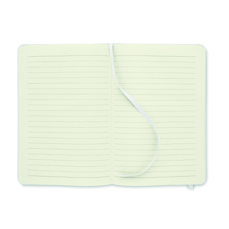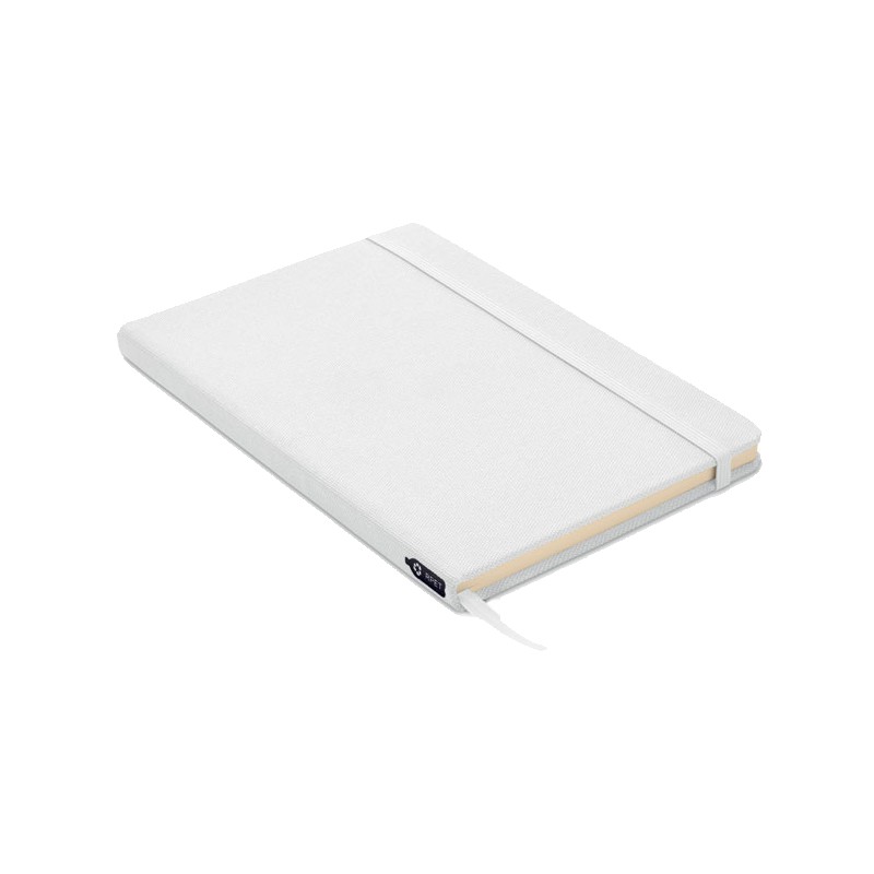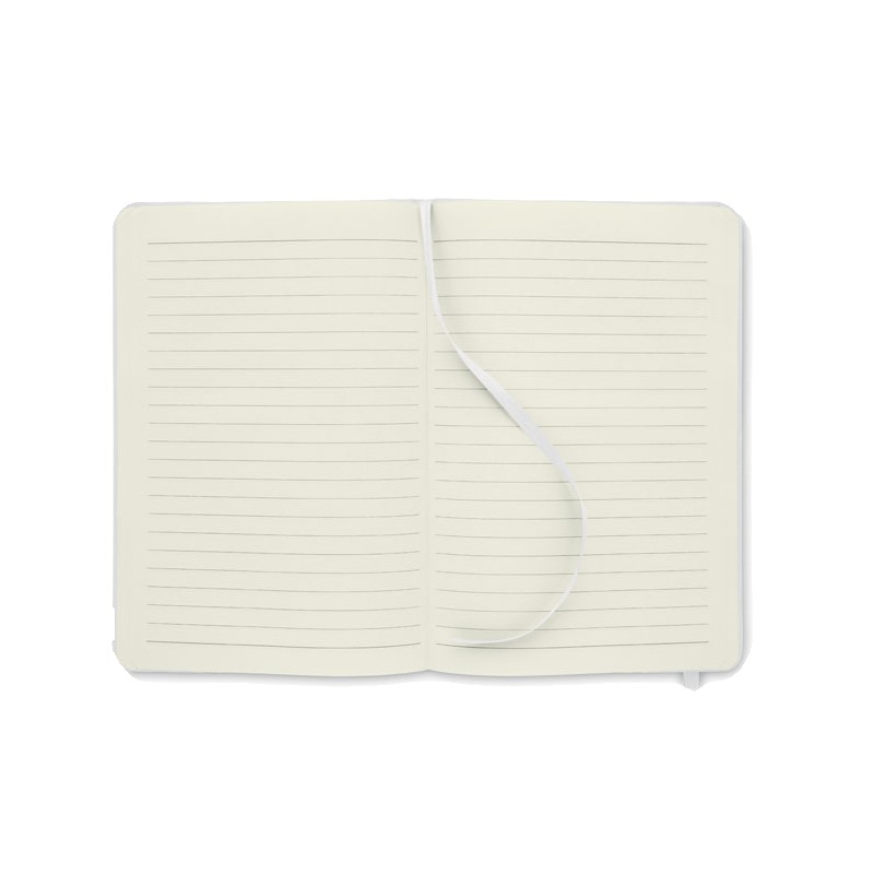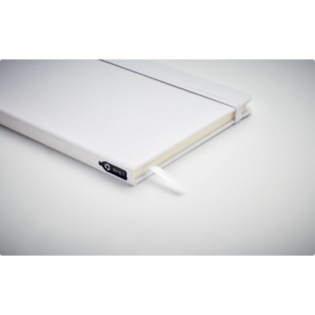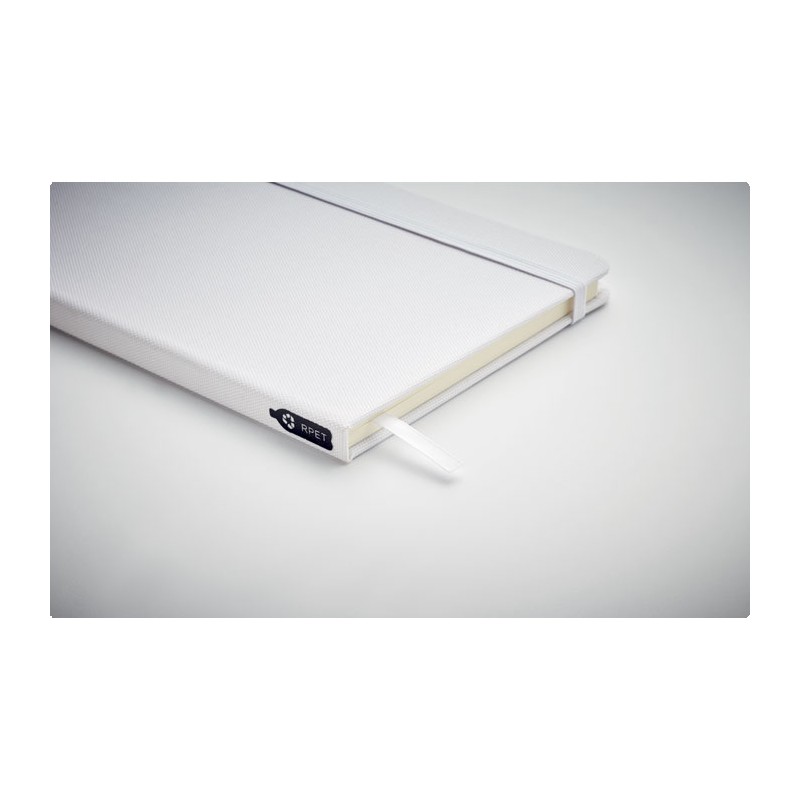 Carnet A5 avec couverture rigide en RPET 600D. Reliure. 160 pages lignées en papier recyclé (80 feuilles). Bande élastique de fermeture et ruban marque-page assortis. FSC®-certified | FSC MIX CREDIT, P7.1, FSC-C213206