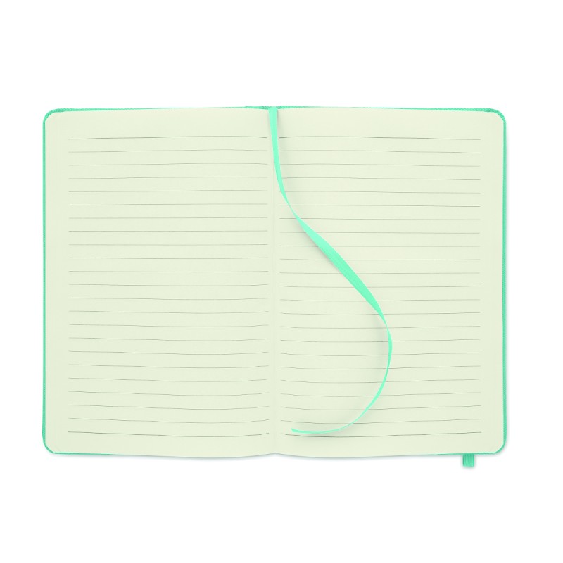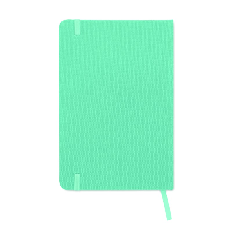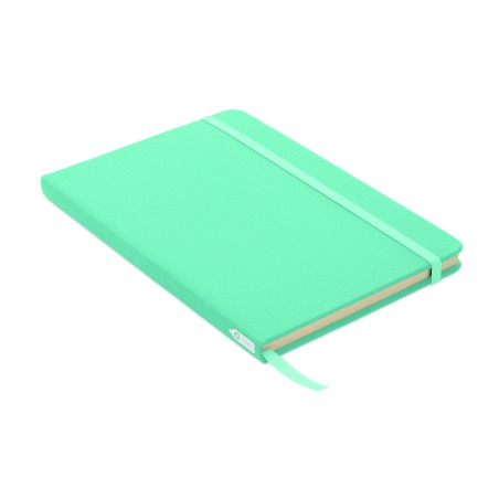 Carnet A5 avec couverture rigide en RPET 600D. Reliure. 160 pages lignées en papier recyclé (80 feuilles). Bande élastique de fermeture et ruban marque-page assortis. FSC®-certified | FSC MIX CREDIT, P7.1, FSC-C213206