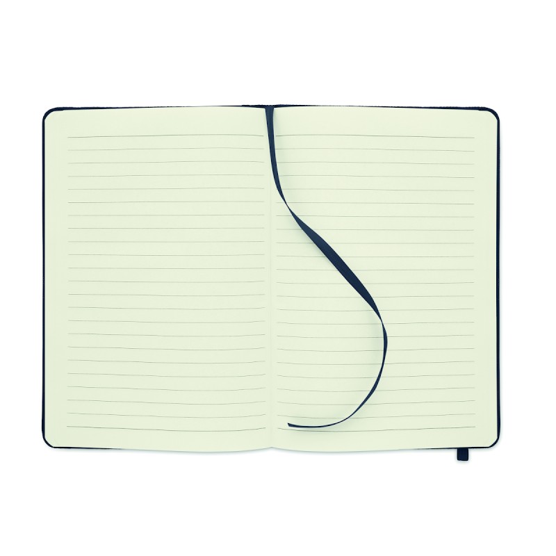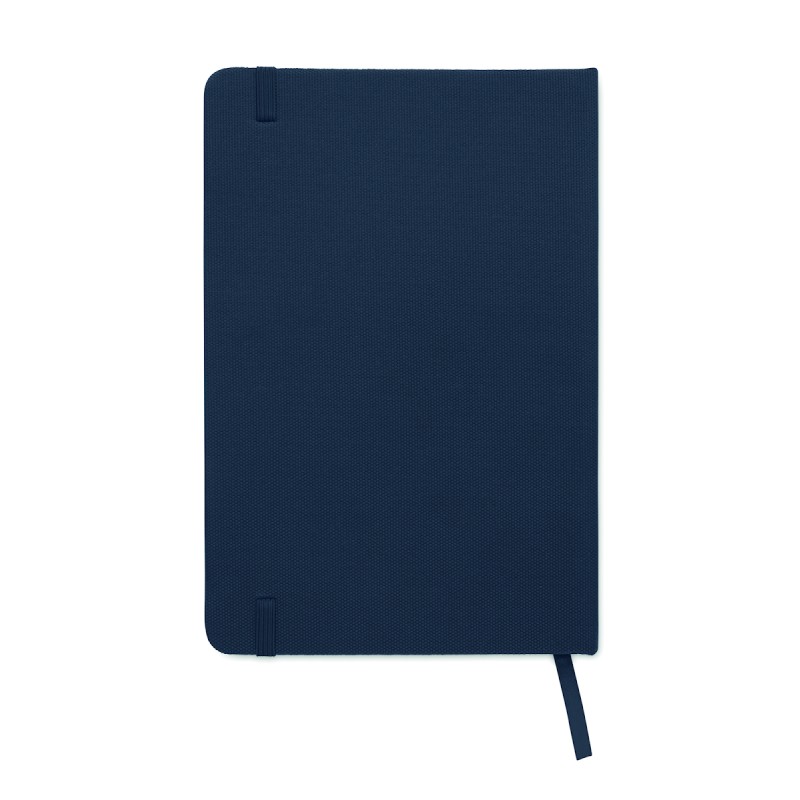 Carnet A5 avec couverture rigide en RPET 600D. Reliure. 160 pages lignées en papier recyclé (80 feuilles). Bande élastique de fermeture et ruban marque-page assortis. FSC®-certified | FSC MIX CREDIT, P7.1, FSC-C213206