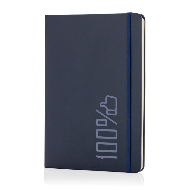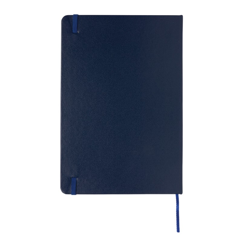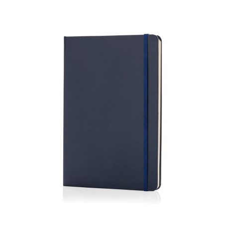 Carnet de notes A5 à couverture rigide avec bande élastique avec 72 feuilles/144 pages de 70g/m² (papier crème), lignes noires et marque-page.
