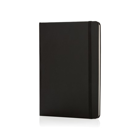 Carnet de notes A5 à couverture rigide avec bande élastique avec 72 feuilles/144 pages de 70g/m² (papier crème), lignes noires et marque-page.