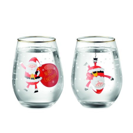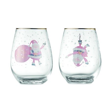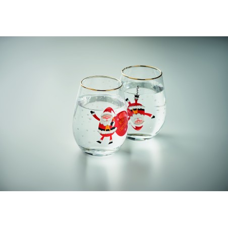 Lot de 2 verres de Noël avec bord doré. Présentés dans une boîte cadeau. Capacité : 330ml.