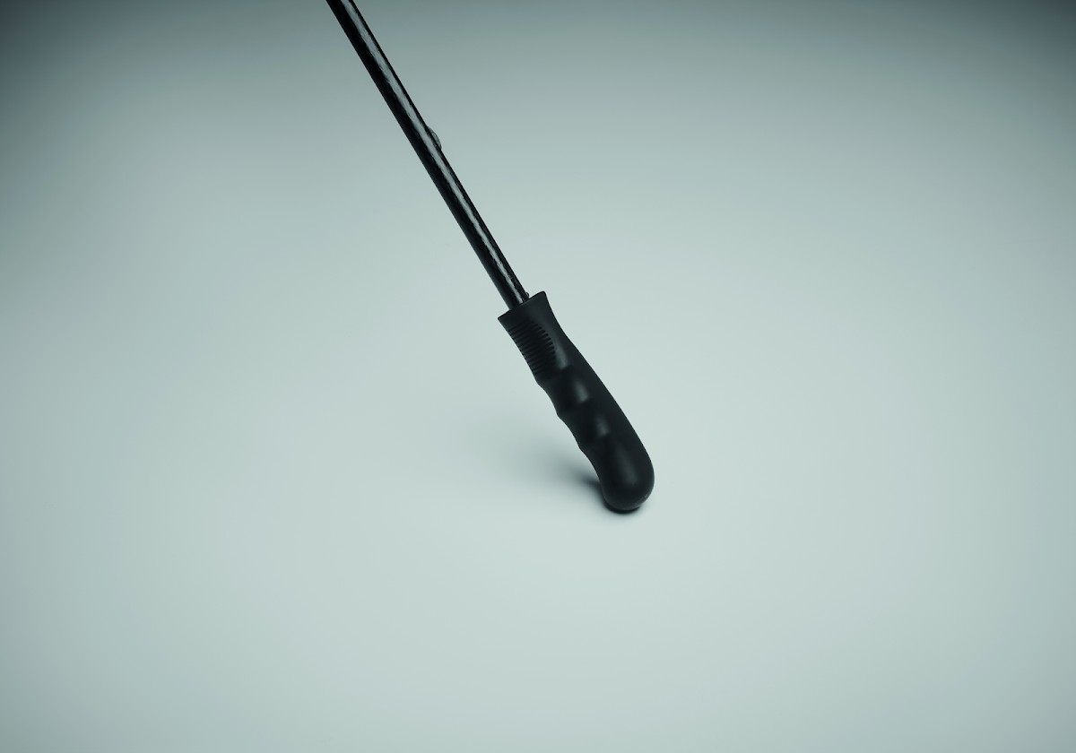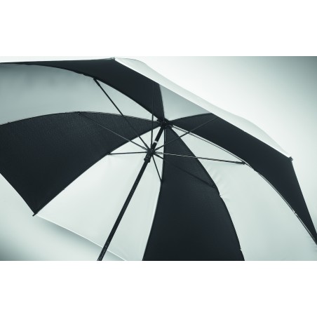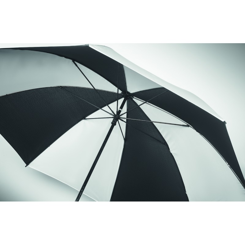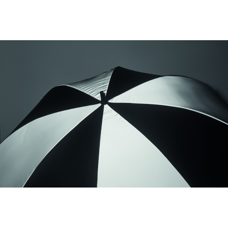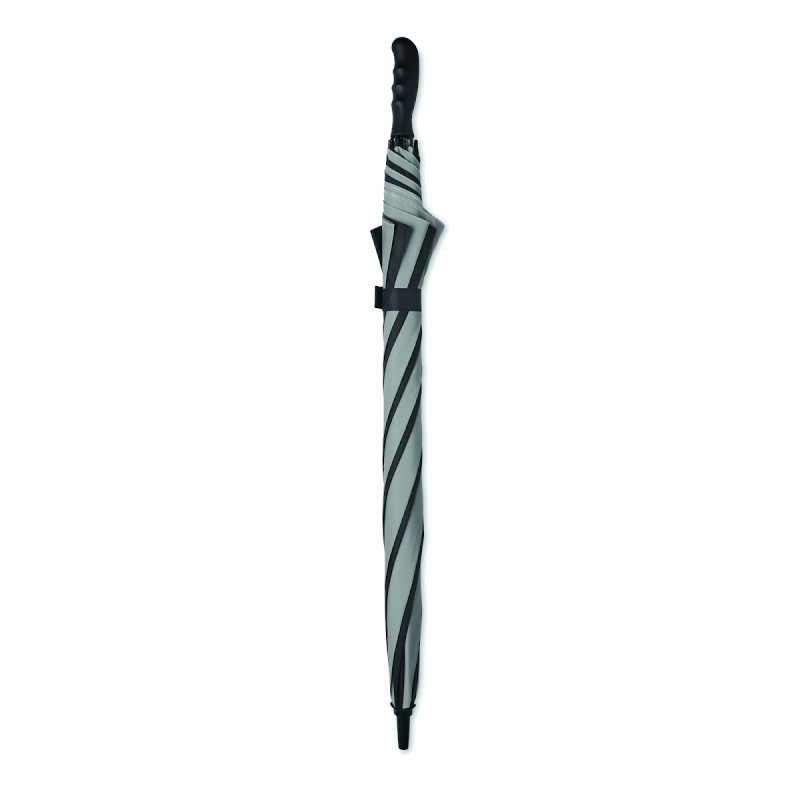 Parapluie tempête de 30'''' à ouverture et fermeture manuelle en pongé 190T (4 pans) et matériau réfléchissant (4 pans) avec mât, baleines en fibre de verre. Poignée droite en ABS avec finition en caoutchouc.