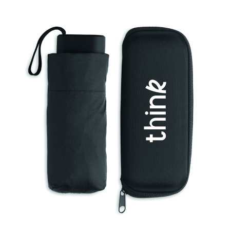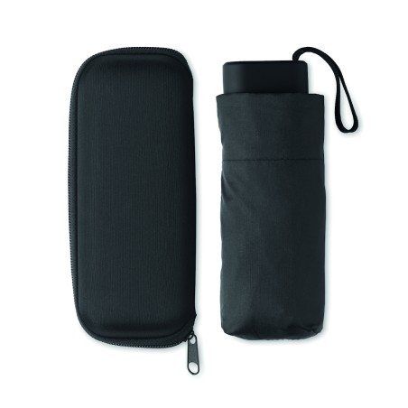 Parapluie tempête 19 pouces 5 plis à ouverture et fermeture manuelles en pongé 190T. Présenté dans un étui EVA.
