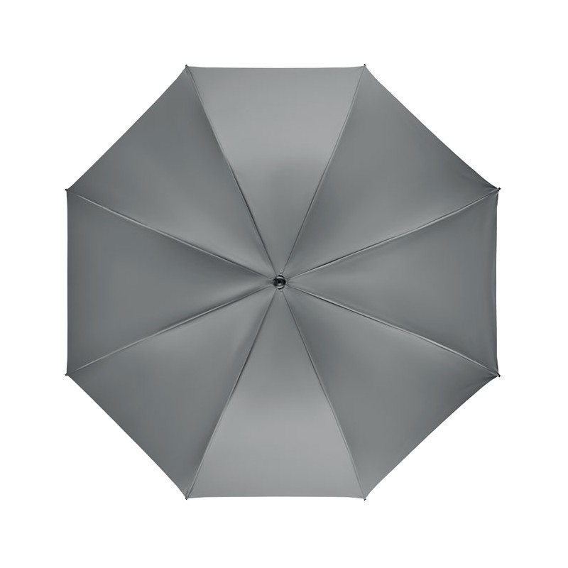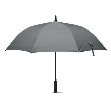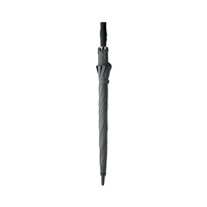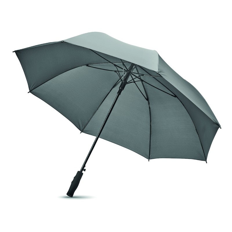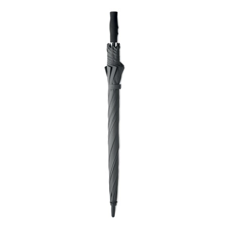 Parapluie 27'', tempête, manuelle automatique en pongée 190T avec mât et baleines en fibre de verre. Embouts en plastique noir. Poignée droite en ABS noir avec finition caoutchoutée. Fermeture manuelle.