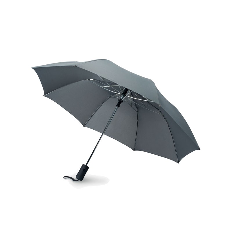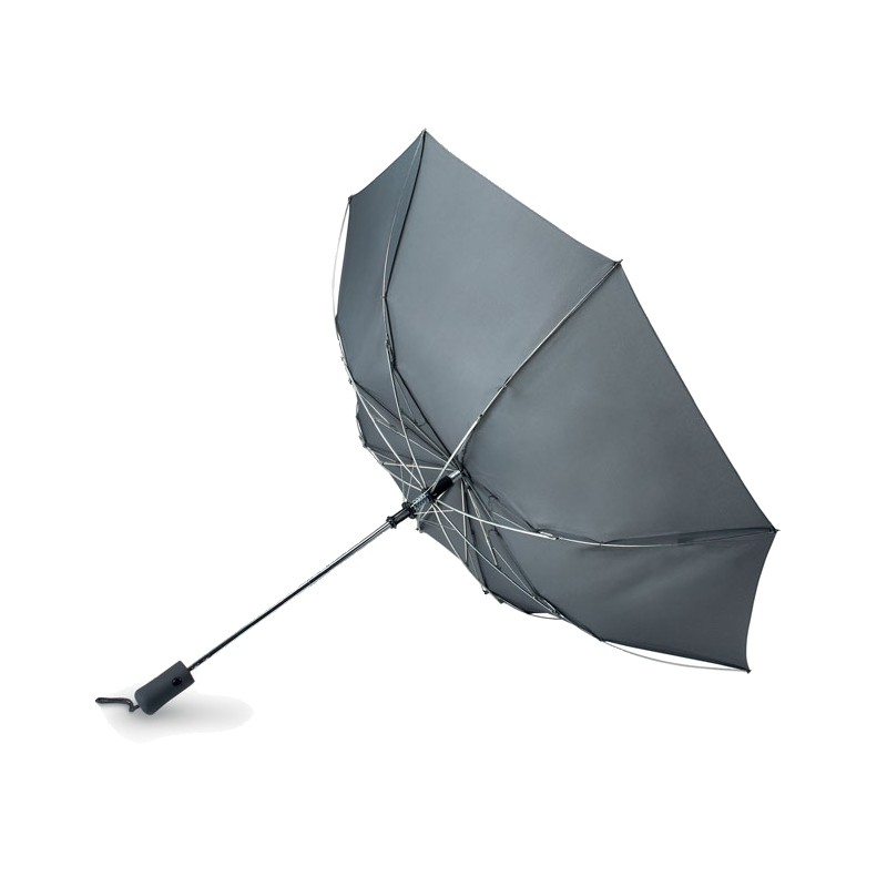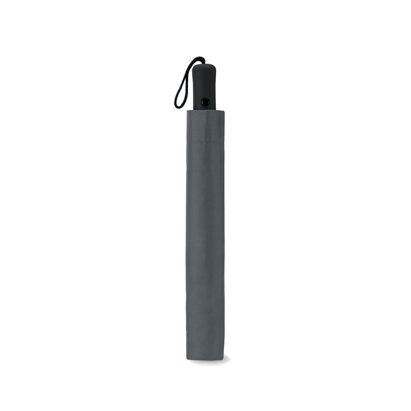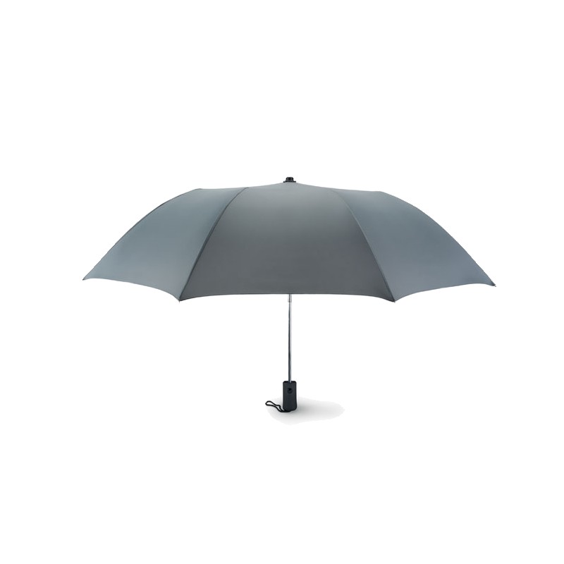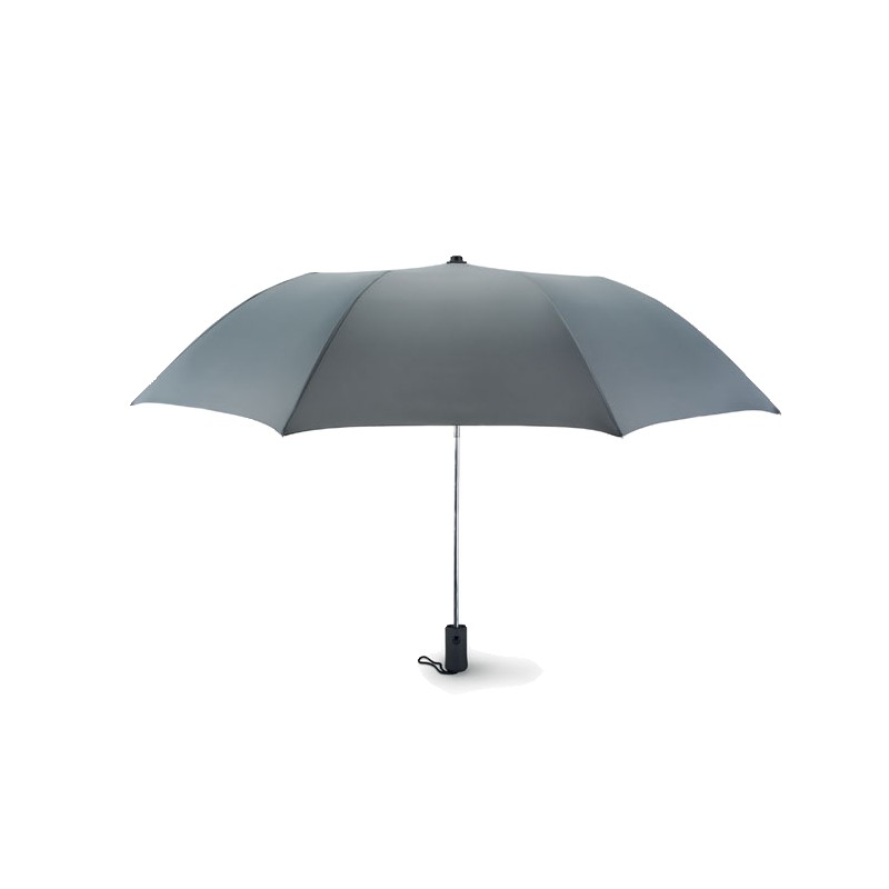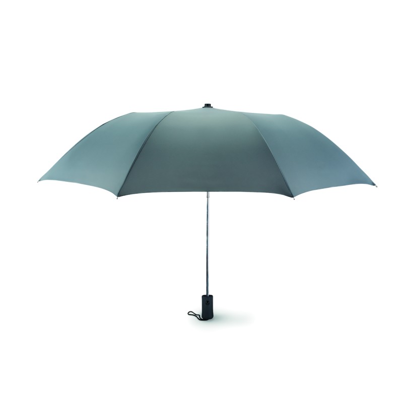 Parapluie ouverture automatique en pongee 190T avec mât et baleines en acier plaqué. Poignée noire en ABS caoutchouté. 2 sections se replient. Comprend pochette assortie. Fermeture manuelle. Diam: 93 cm. Long. mât : 52,5 cm