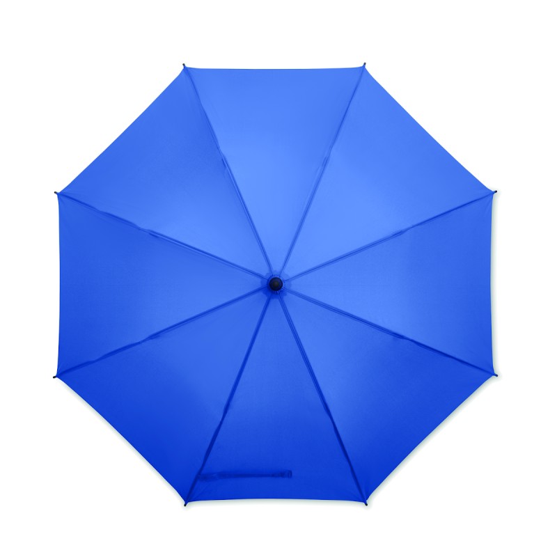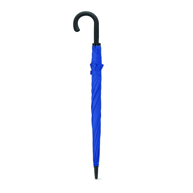 Parapluie de tempête ouverture auto en pongee 190T mât en métal plaqué noir. Poignée incurvée en ABS caoutchouté noir et bouton gris. Fermeture manuelle. Diam: 102 cm. Long. mât : 58 cm