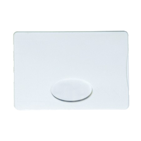 Etui carte de crédit. Transparent. 2 emplacements de marquage : 80 x 32 mm, au-dessus de l’ouverture, au-dos, face pleine 80 x 50 mm.Par défaut, marquage sur la face avec ouverture.