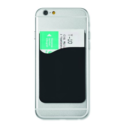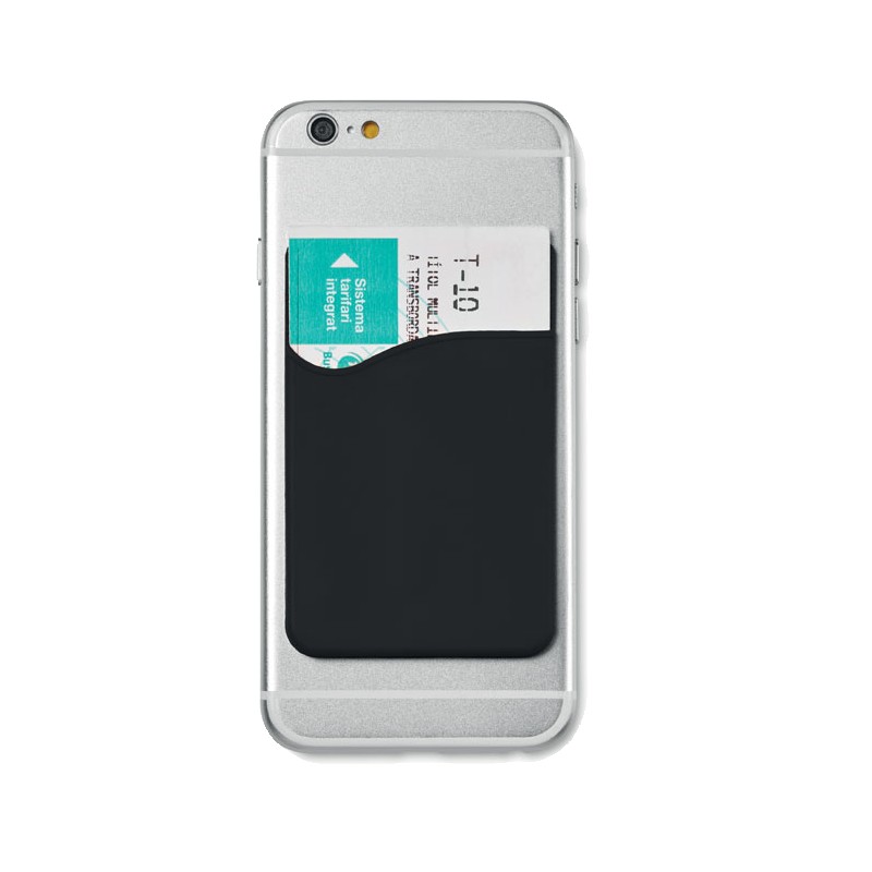 Porte-cartes en silicone avec du ruban adhésif pour le fixer à l'arrière du smartphone.