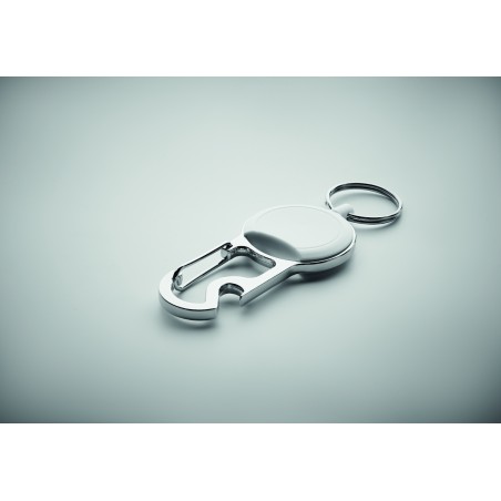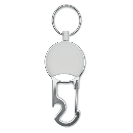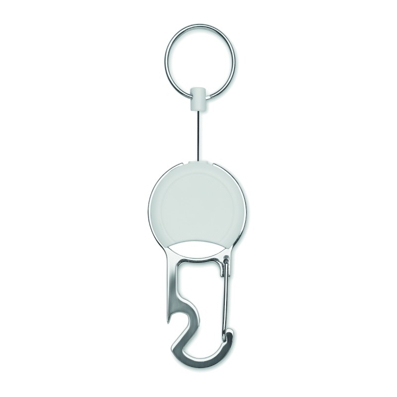 Porte-badge rétractable en ABS avec clip, porte-clés et décapsuleur.