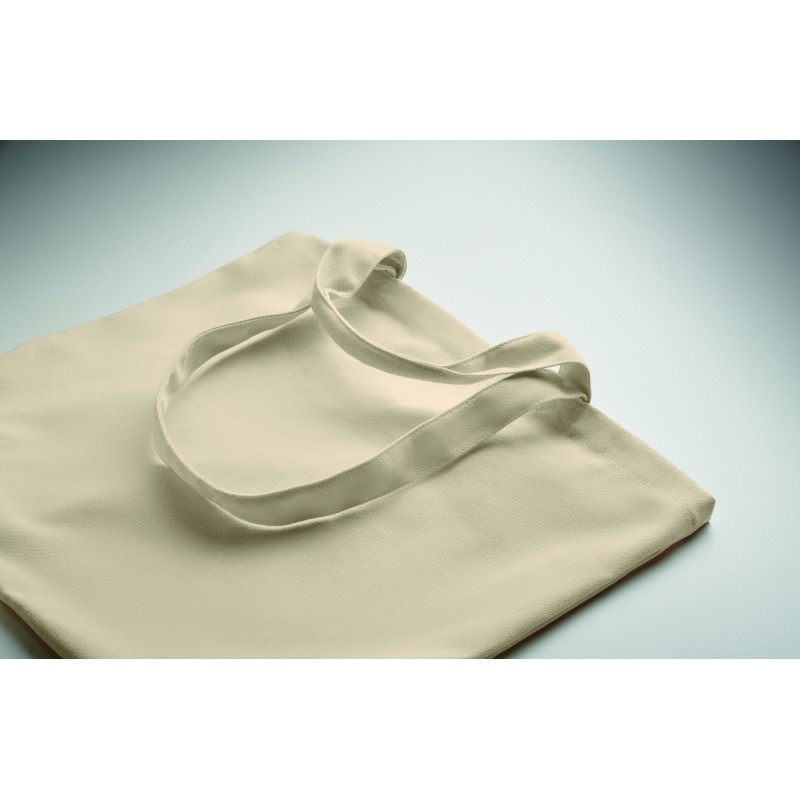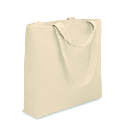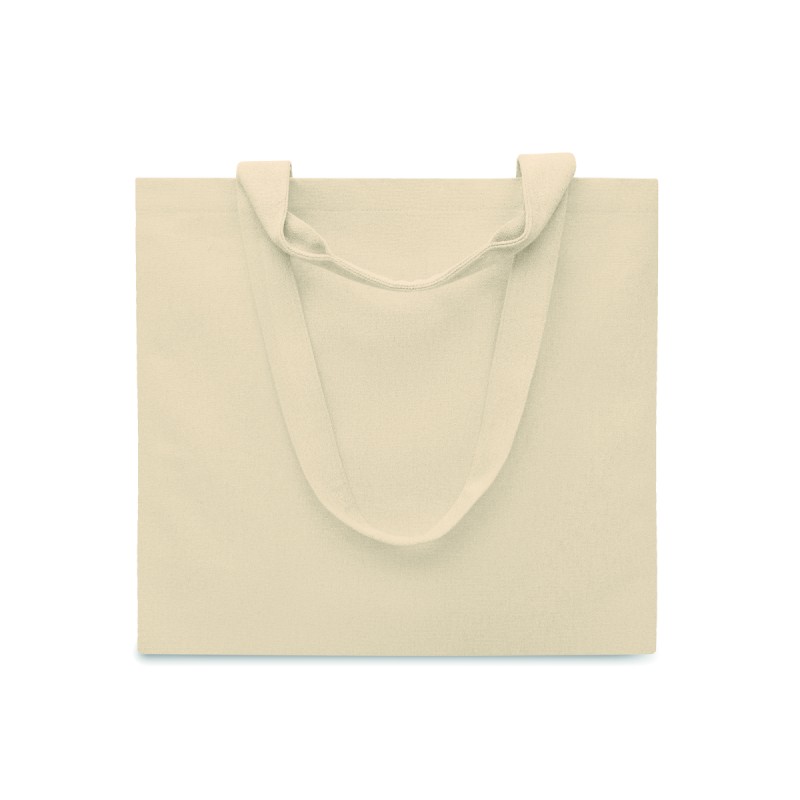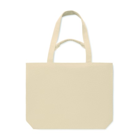 Sac shopping/plage en tissus recyclés (60% coton recyclé, 40% polyester recyclé) avec anses courtes et longues. 320 gr/m².
