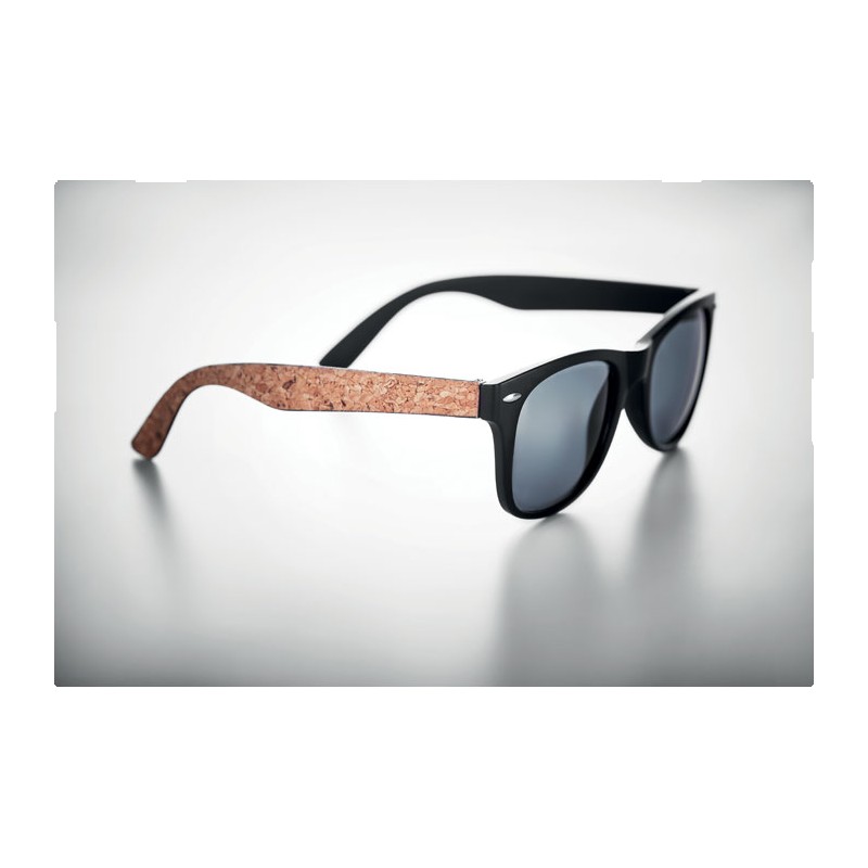 Lunettes de soleil classiques et élégantes avec protection UV400 et revêtement exterieur des branches en liège. Le liège est un matériau 100% naturel. En raison de sa structure et de la porosité de sa surface, le résultat final de l'impression par article peut présenter des différences.