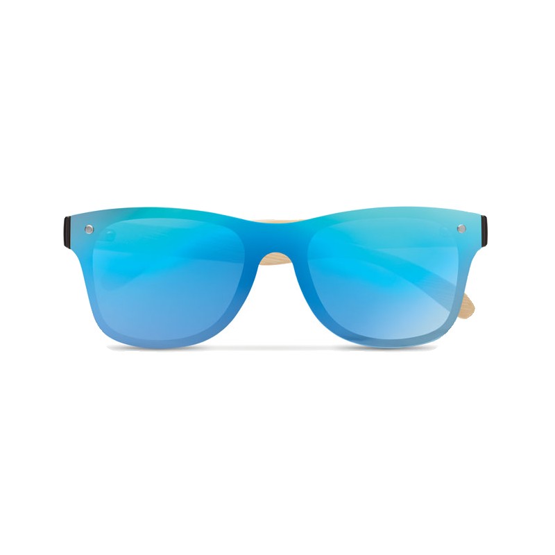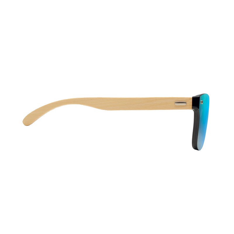 Lunettes de soleil avec branches en bambou et verre miroir. Protection UV400. Le bambou étant un matériau naturel, la couleur varie d’un article à l’autre.