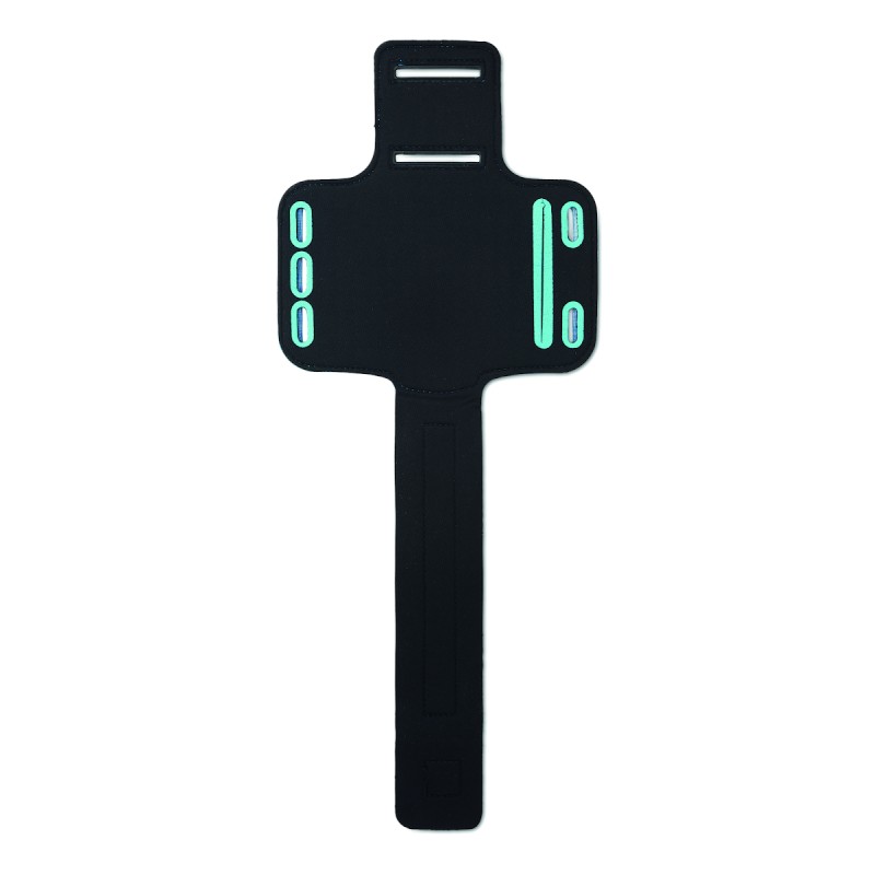 Brassard réglable en néoprène avec façade transparente avec détails réfléchissants. Convient aux téléphones à écran de 6,5 pouces maximum.
