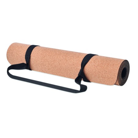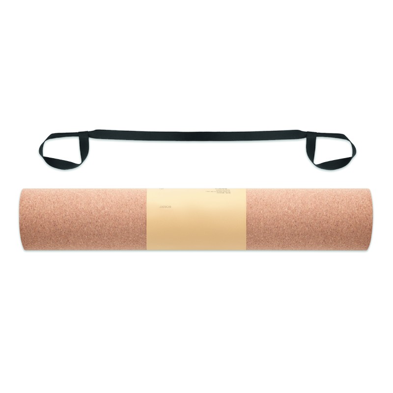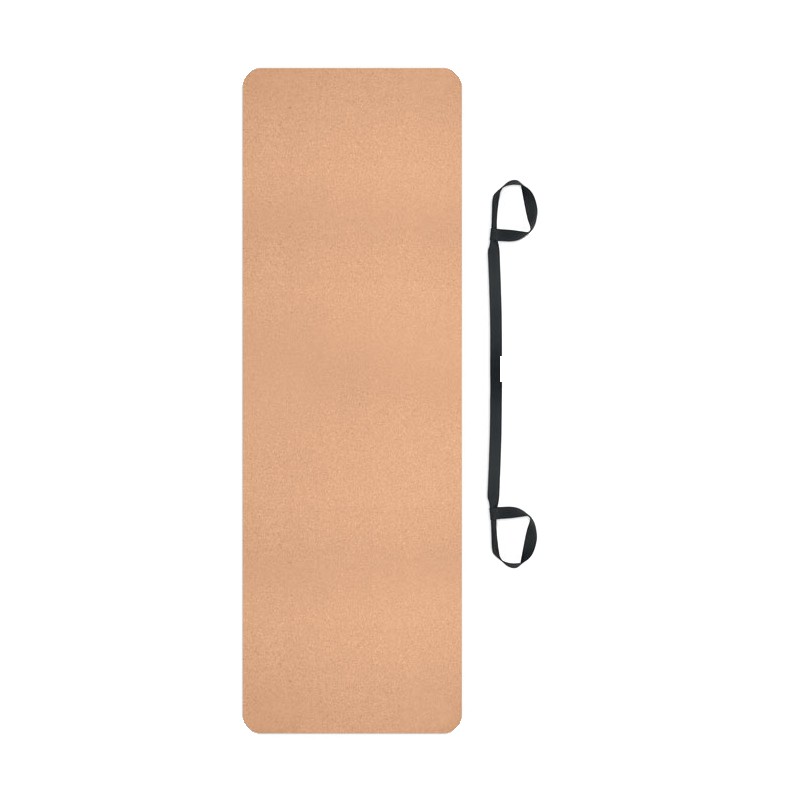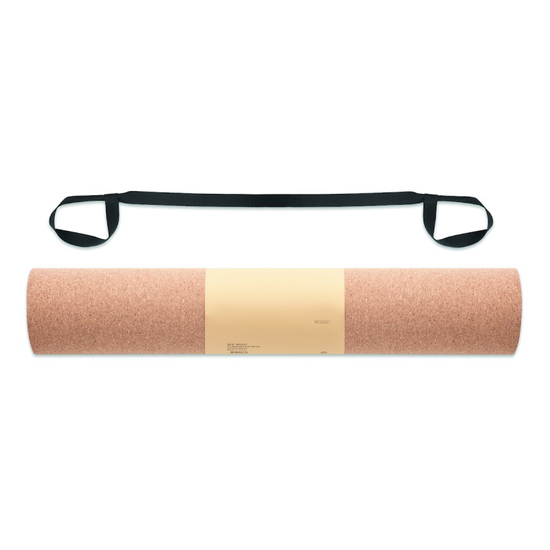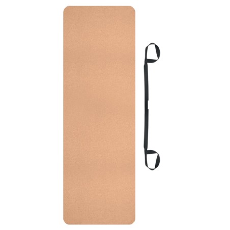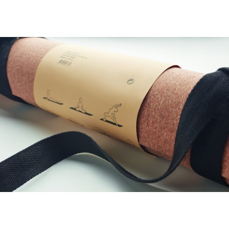 Tapis d'exercice de yoga en liège et TPE présenté dans un emballage en papier avec instructions. Épaisseur 0,4 cm. Comprend un support de corde d'exercice/ sangle en coton. Le liège est un matériau 100% naturel. En raison de sa structure et de la porosité de sa surface, le résultat final de l'impression par article peut présenter des différences.