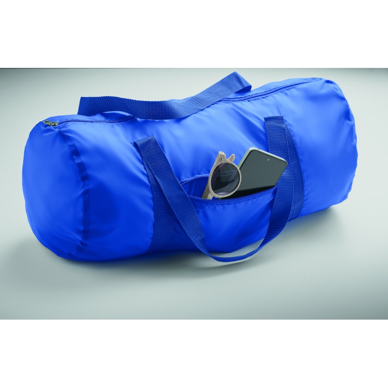 Sac de sport en polyester RPET 190T avec pochette zippée sur le devant. Capacité de 20 litres.