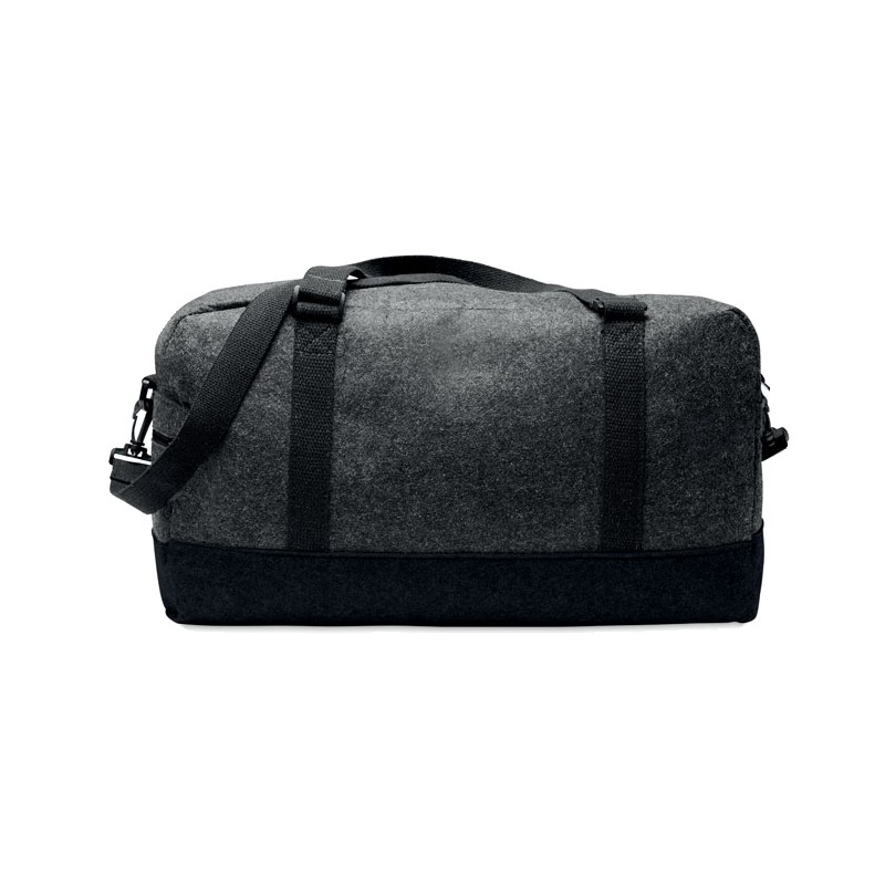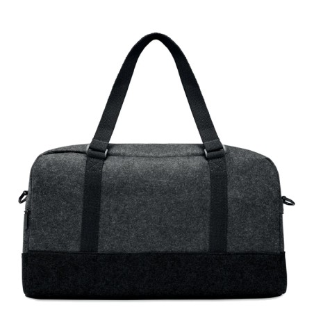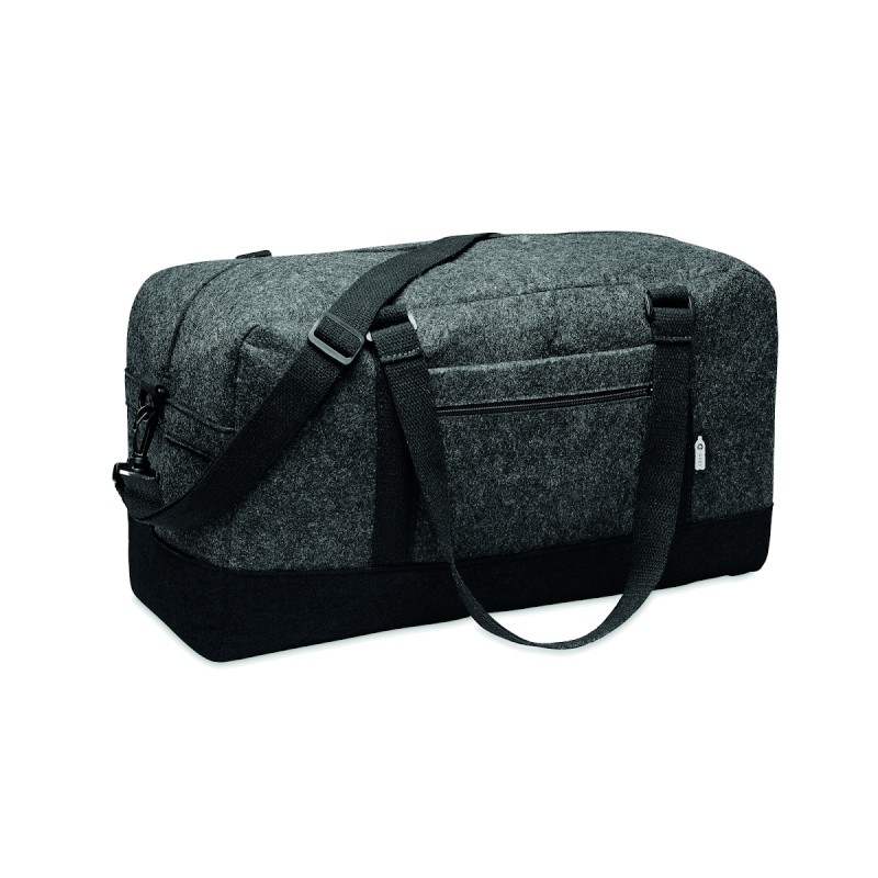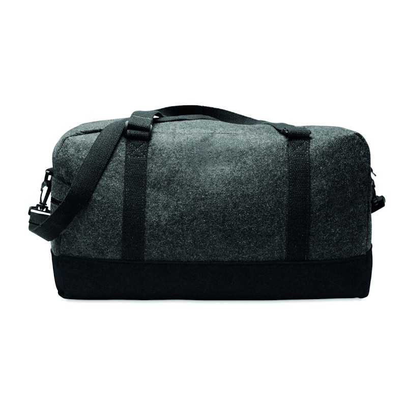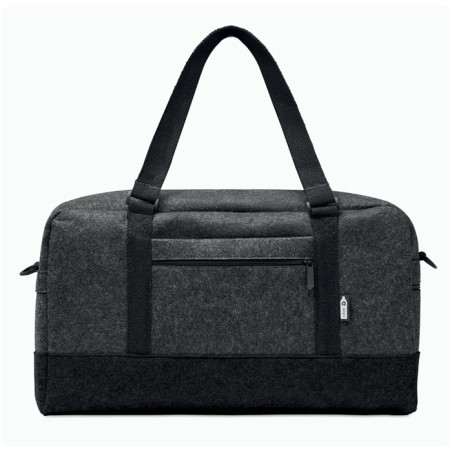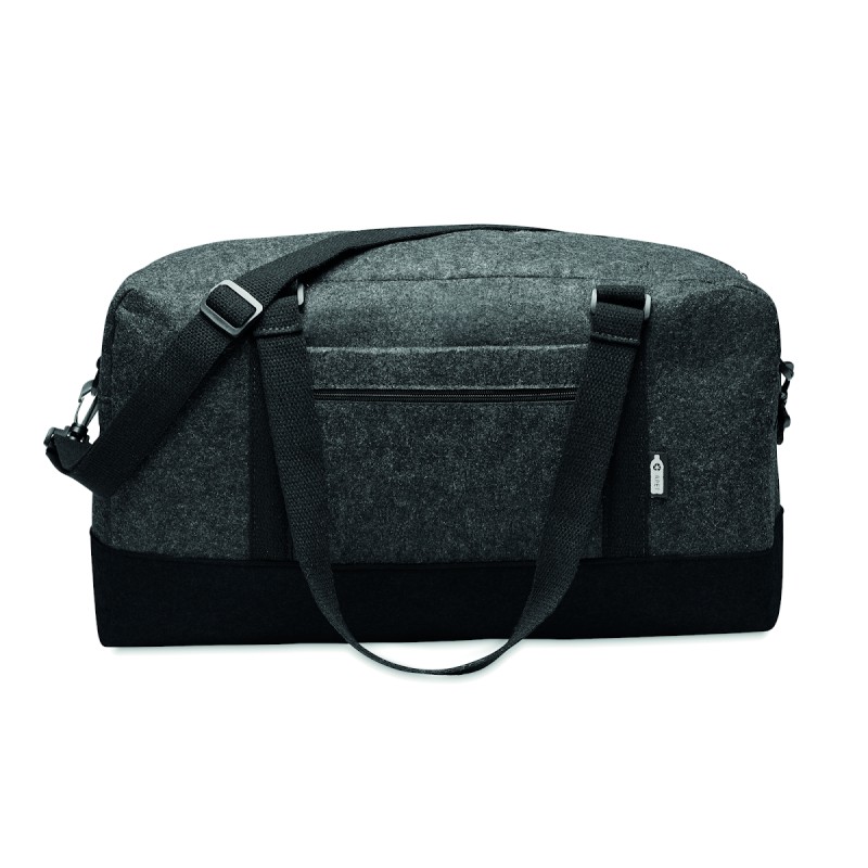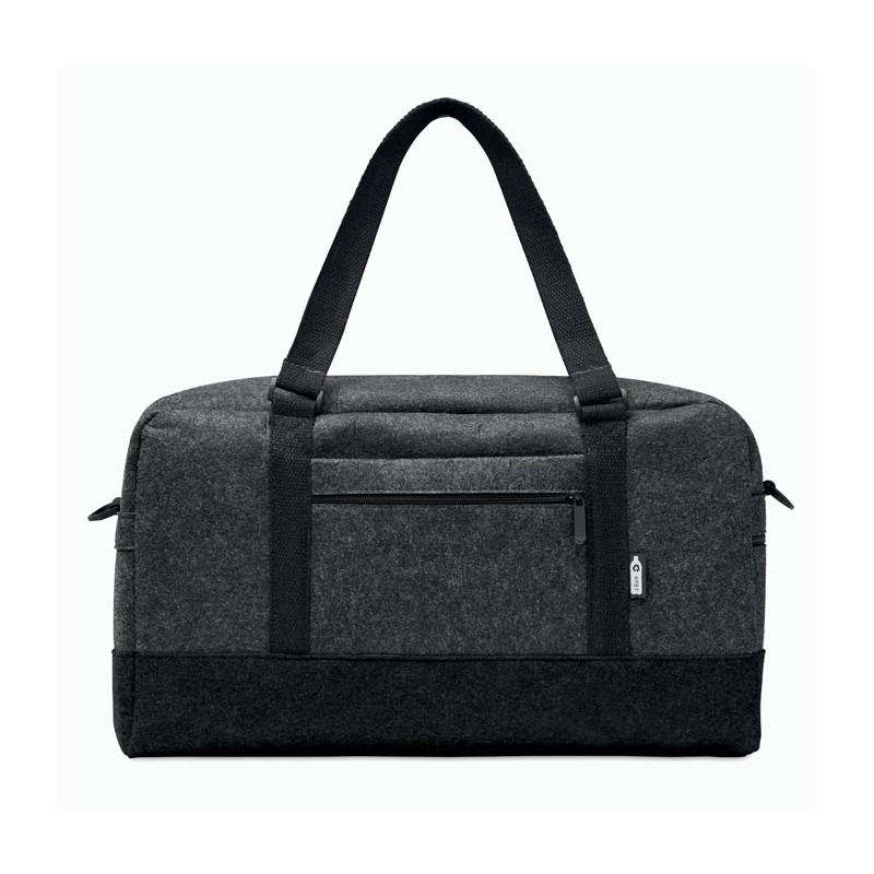 Sac de sport/fitness ou de week-end en feutre RPET avec poche frontale zippée, poignées en toile et bandoulière réglable amovible.
