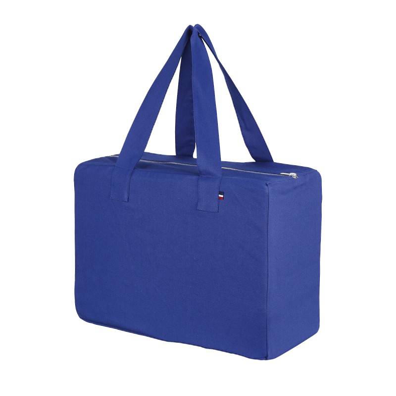 Grand sac weekend pratique avec sa fermeture zippée en métal Anses double épaisseur avec coutures renforcées Dimensions anses : 63 x 4 cm Poche intérieure avec étiquette gros grain "Fabriqué en France" Galon tricolore fixé dans la anse