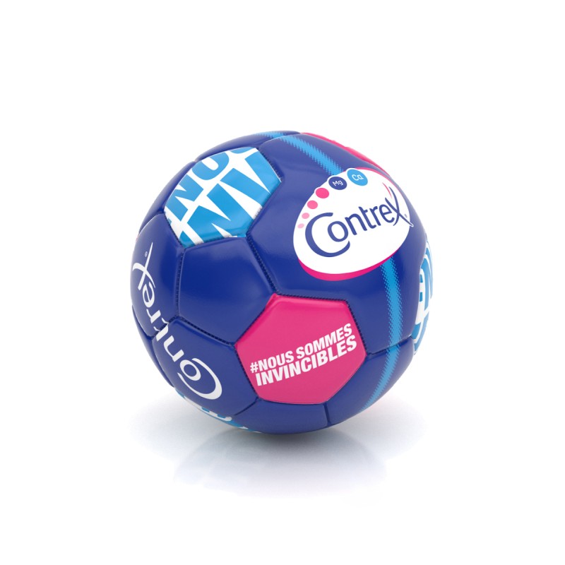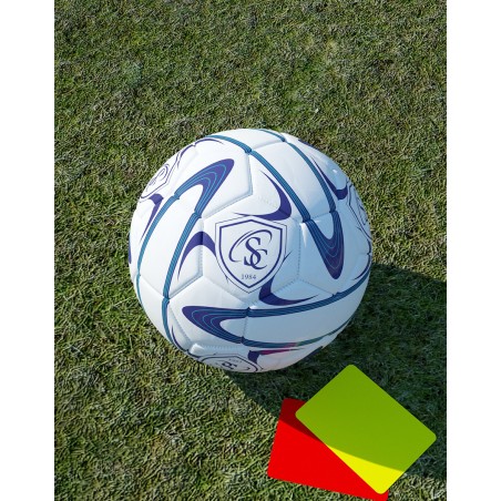 Ballon de football 100% personnalisé idéal pour la promotion et la communication. Taille 5 officielle. Diamètre : 21-23cm. Circonférence : 69 à 71cm. Poids : 400g. Ballon cousu machine en 26, 30 ou 32 panneaux. Matière PVC Brillant 2.8mm (finition mat disponible en option). Vessie en latex. Personnalisation intégrale en sérigraphie sur tous les panneaux (jusqu’à 6 couleurs maximum). Ballon livré non gonflé sous polybag individuel. Aiguille en option. Minimum de commande : 50 pcs