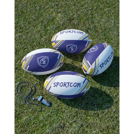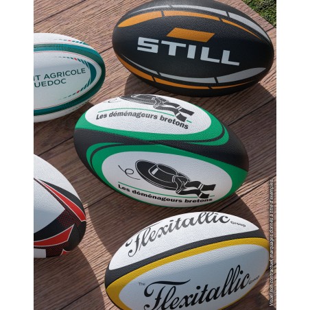Mini ballon de rugby 100% personnalisé en caoutchouc vulcanisé à picots. Poids : 150g. Longueur gonflé : 17cm. Longueur à plat : 21cm. Vessie en latex synthétique. Cousu machine 4 panneaux. Personnalisation intégrale sur l’ensemble du ballon en sérigraphie (6 couleurs maximum). Ballon livré non gonflé d’office. Ballon livré sous polybag individuel. Aiguille en option. Minimum de commande : 100 pcs