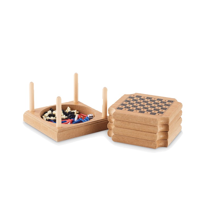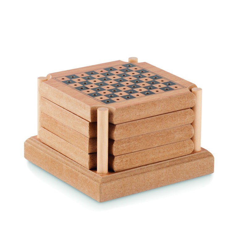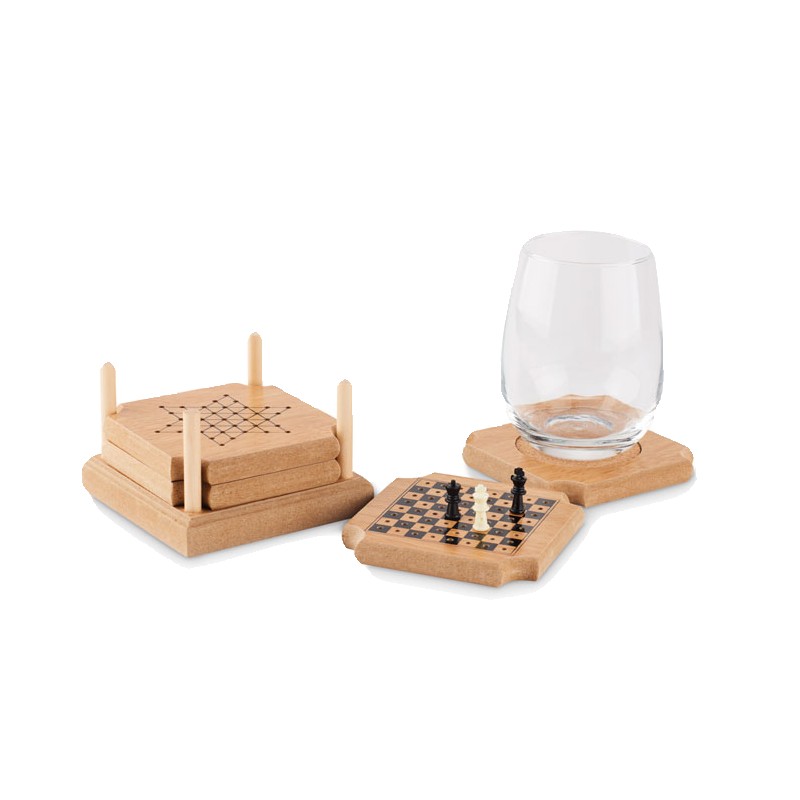 Set de 4 sous-verres en liège et MDF comprenant set de 4 jeux : Tic-Tac- Toe, Backgammon, échecs et dames chinoises. Le liège est un matériau 100% naturel. En raison de sa structure et de la porosité de sa surface, le résultat final de l'impression par article peut présenter des différences.