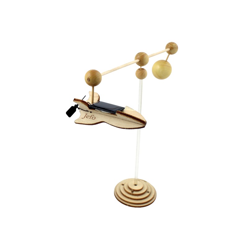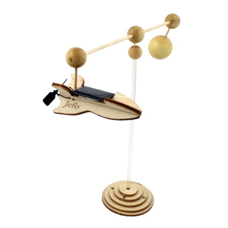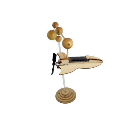 Fusée solaire en bois équipée d’un capteur solaire + moteur électrique pour la faire tourner. Livrée en kit, montage rapide et facile avec notice standard et sans outil. Format kit 220x130 mm. Format monté 200x200mm.