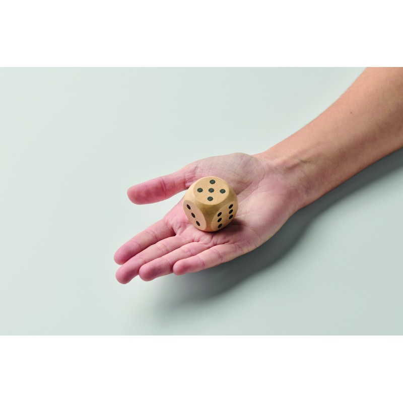 Dés en bois de schima. diamètre de 3 cm. Cet article n'est livré que par multiple de 50 pièces. La face 1 est réservée au marquage. FSC®-certified | FSC 100%, W15.2, FSC-C213206