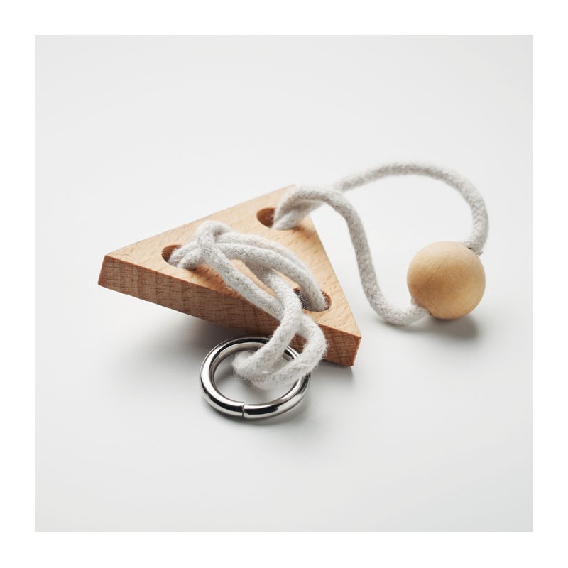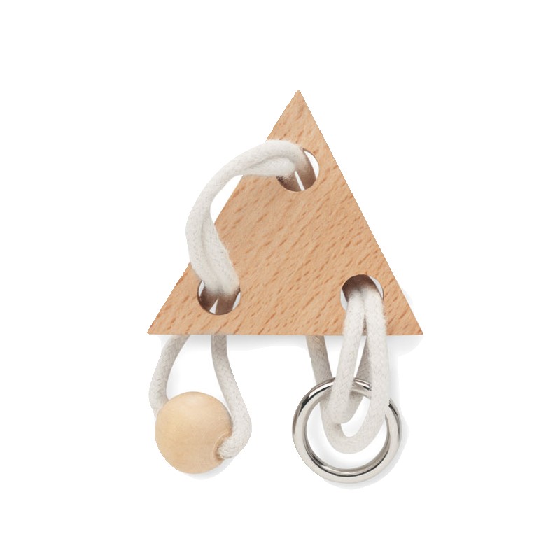 Casse-tête en bois en forme de triangle. Présenté dans une boîte en papier recyclé. Le bois est un produit naturel, et présente de légères variations de couleur, de décoration et de tailles.