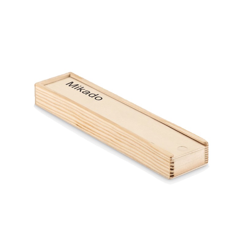Jeu de mikado en bois. Présenté dans une boîte en bois.