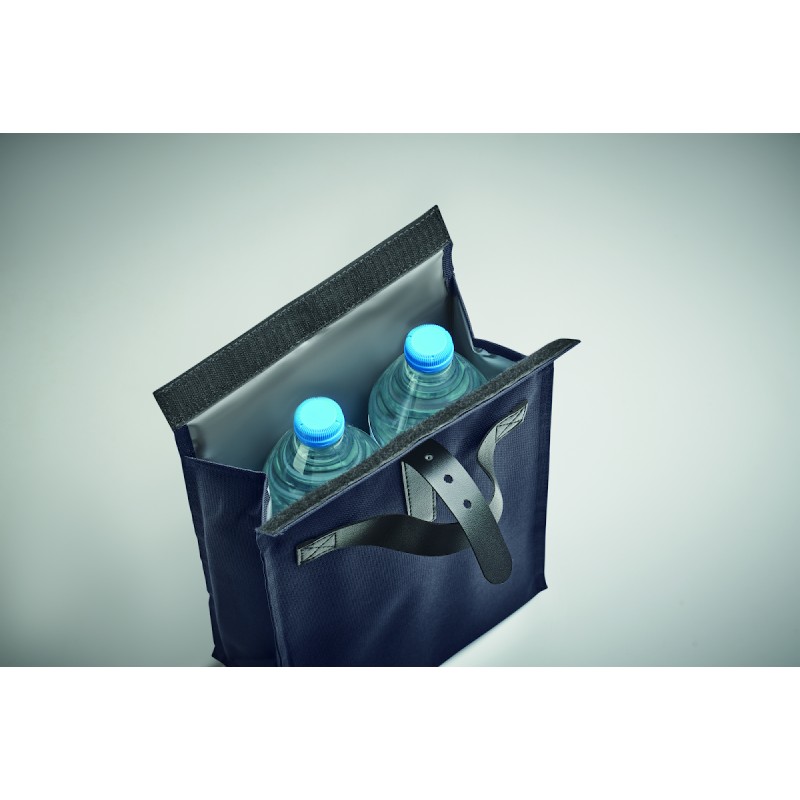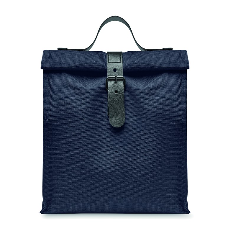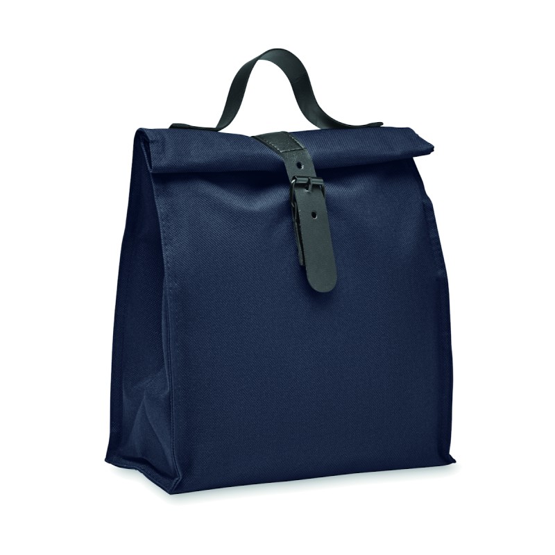 Sac isotherme enroulable en polyester 600D RPET avec poignée et fermeture en PU. Isolation : mousse PE 3 mm avec PEVA.