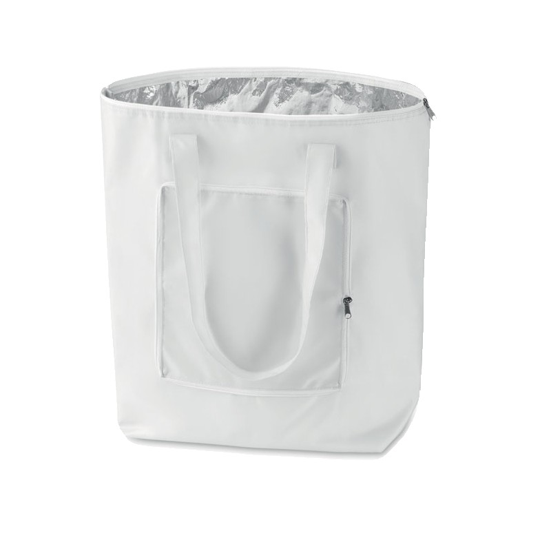 Sac glacière pliable. Idéal pour les produits laitiers. Polyester 210D intérieur en aluminium. Matériel d'isolation: Feuille d'aluminium. Contenance 13L.