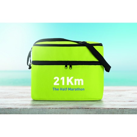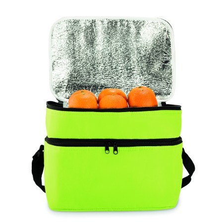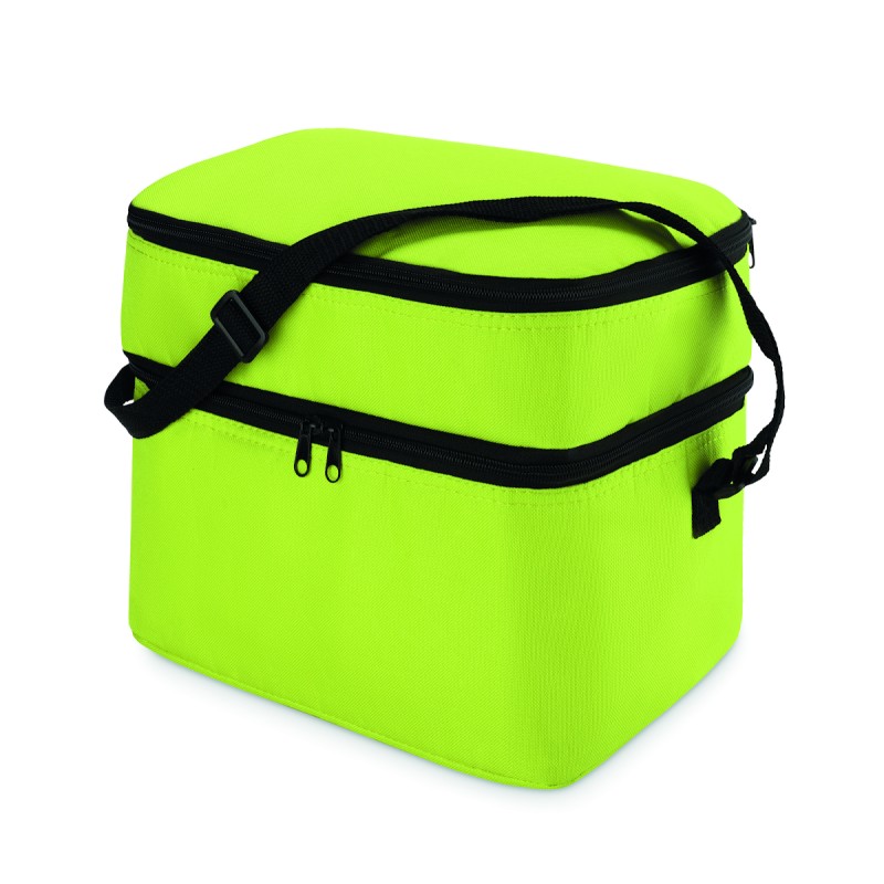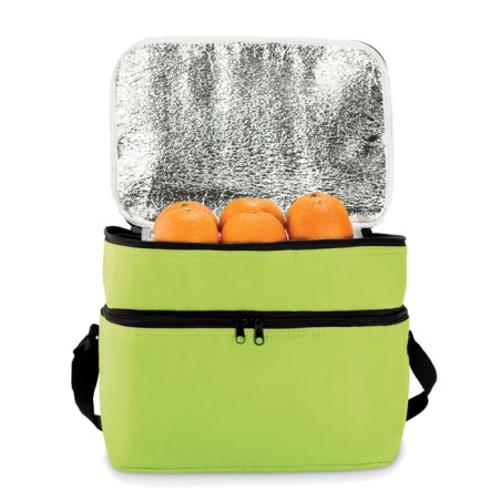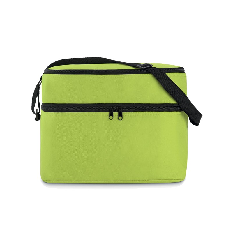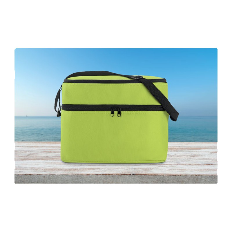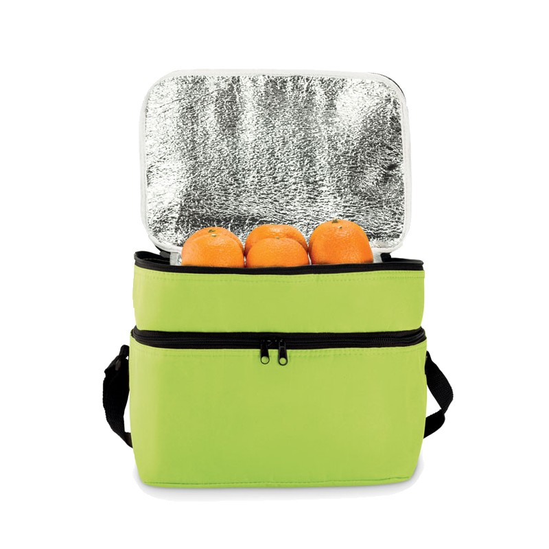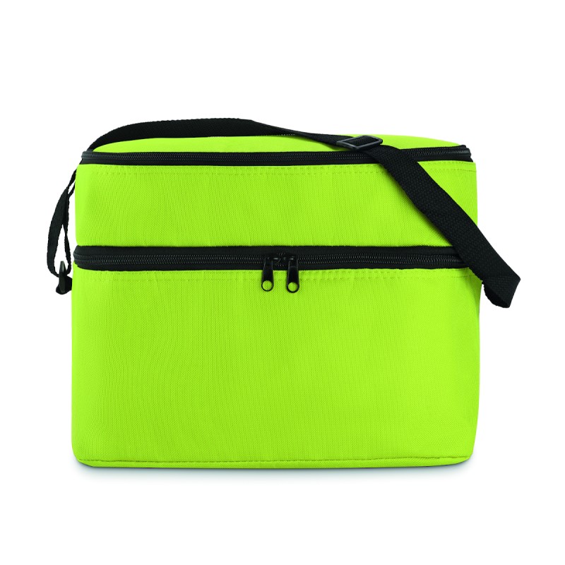 Sac isotherme en 600D avec deux compartiments, bandoulière ajustable.
