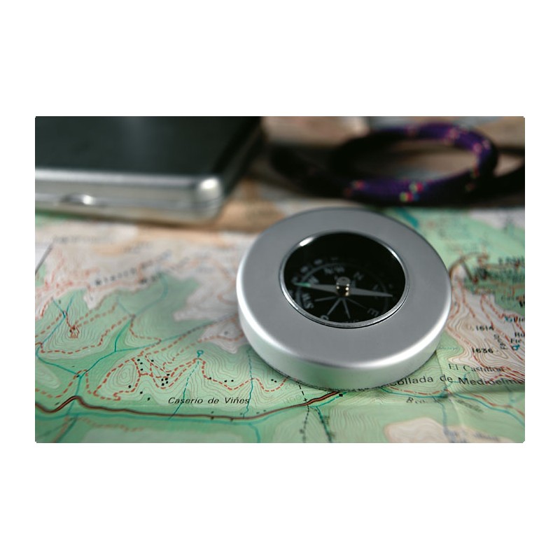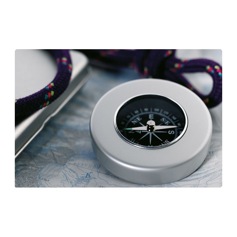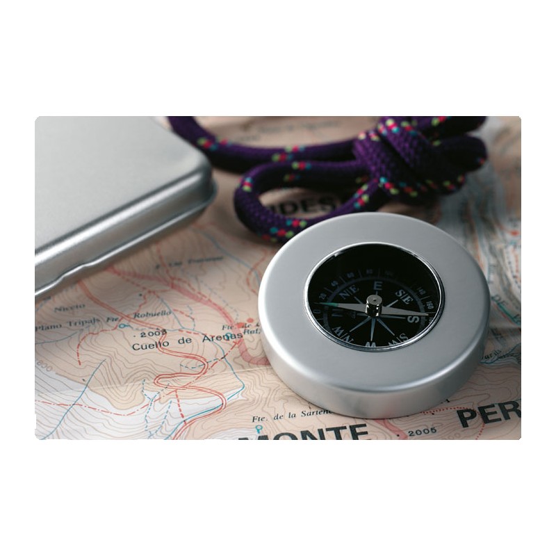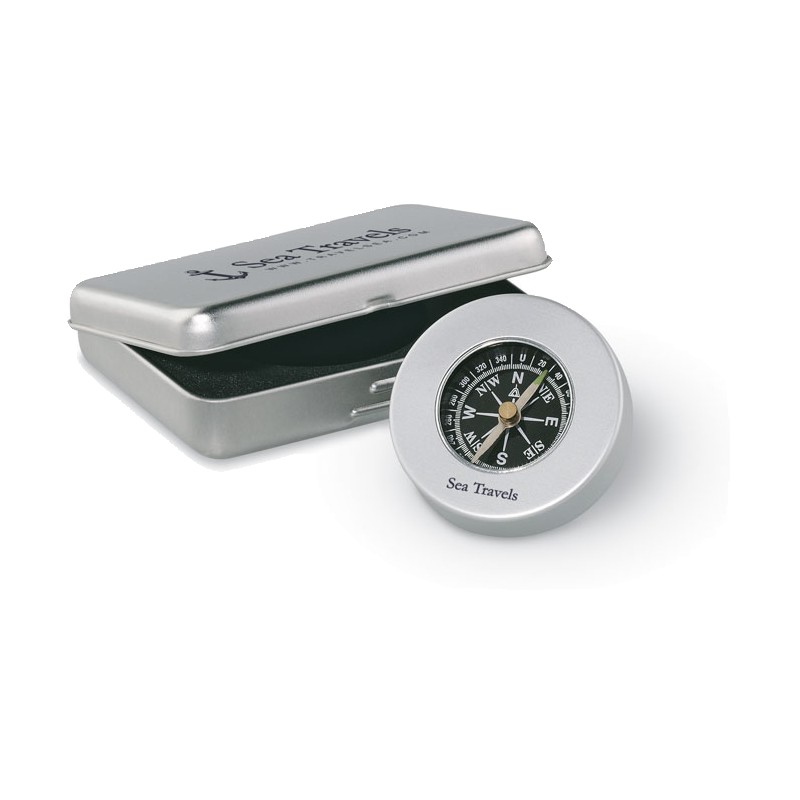 Boussole classique en aluminium. Livrée en boite métal.
