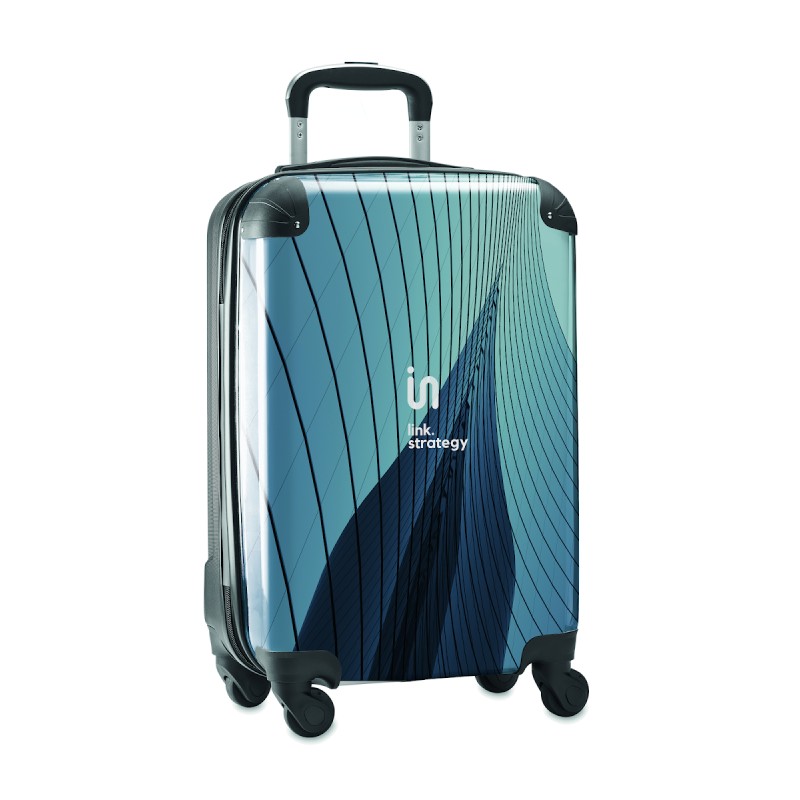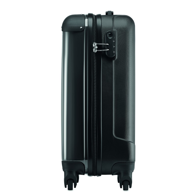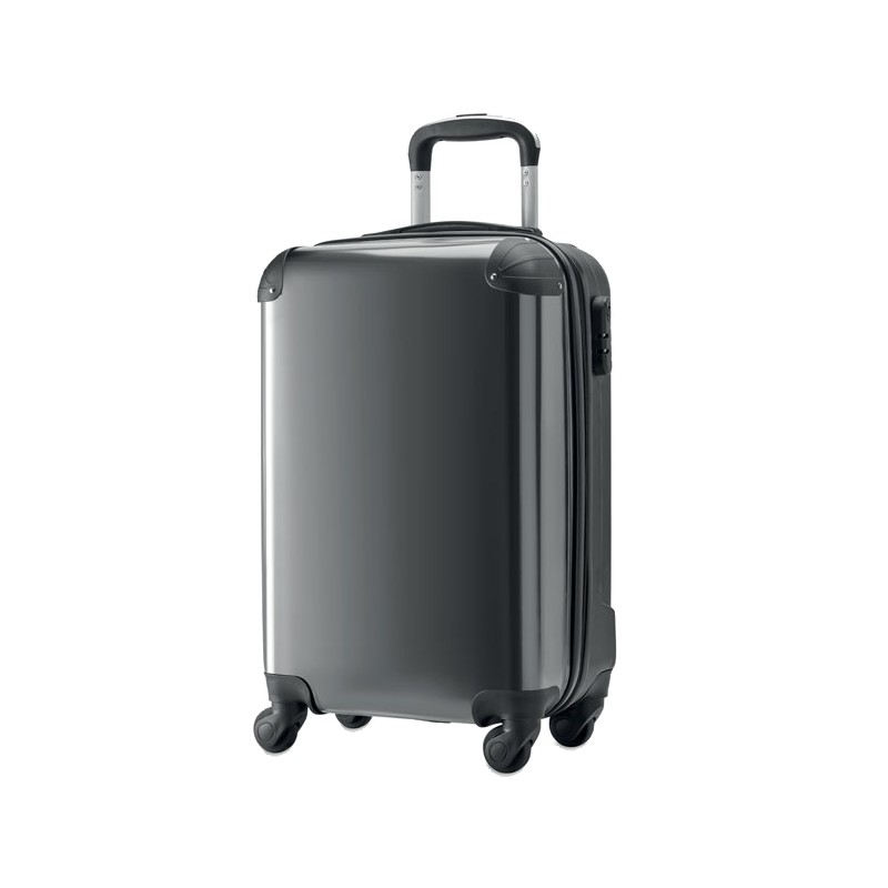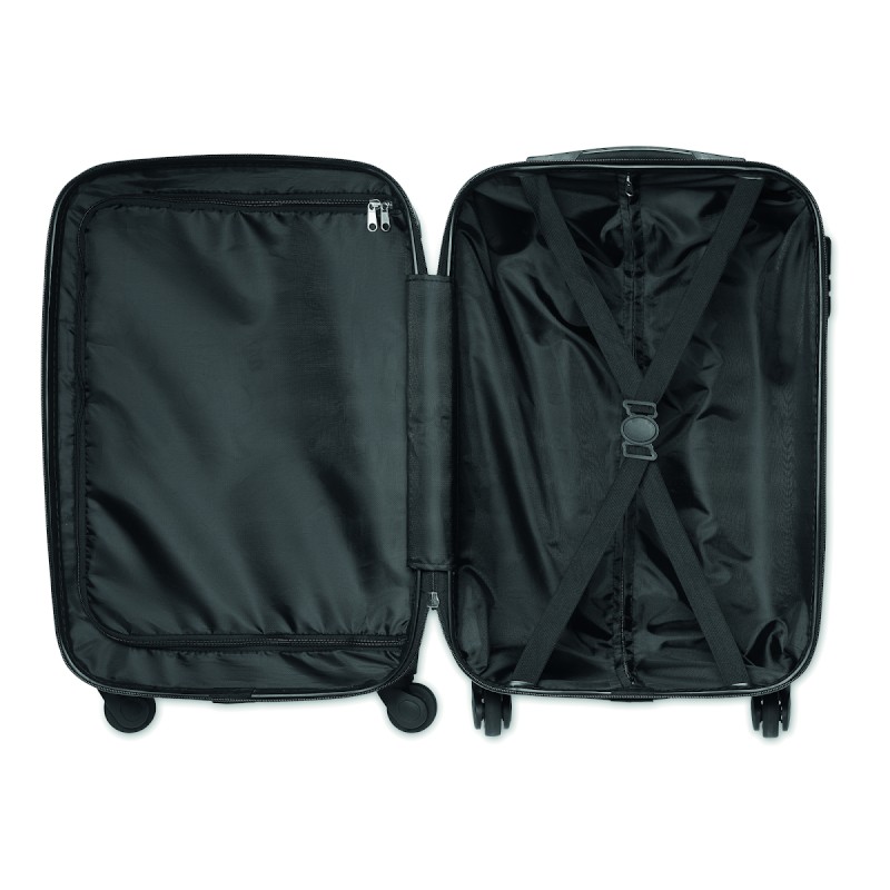 Valise cabine trolley en PC et ABS. Elle possède un compartiment supérieur zippé et un compartiment inférieur avec rubans. Comprend une serrure à combinaison et un cadre à double tube.