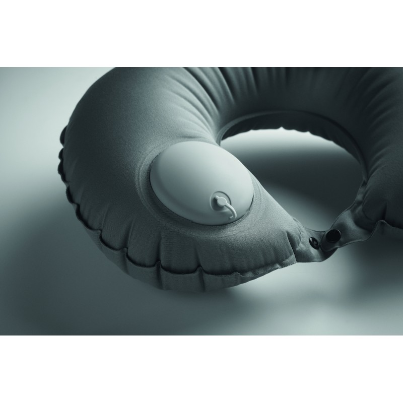 Oreiller gonflable en 50% PET et 50% TPU avec système de gonflage dégonflage intégré. Pochette assortie