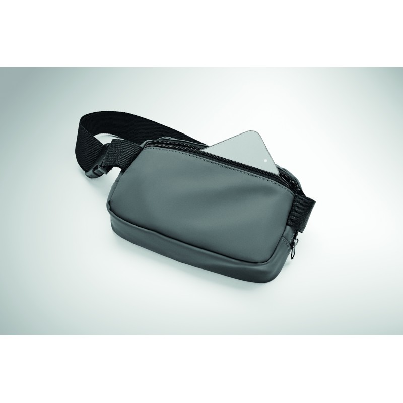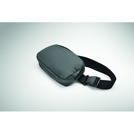 Sac cross body en PU souple avec doublure en polyester 210D RPET. 1 poche principale zippée, 1 poche arrière zippée et un compartiment intérieur en maille.