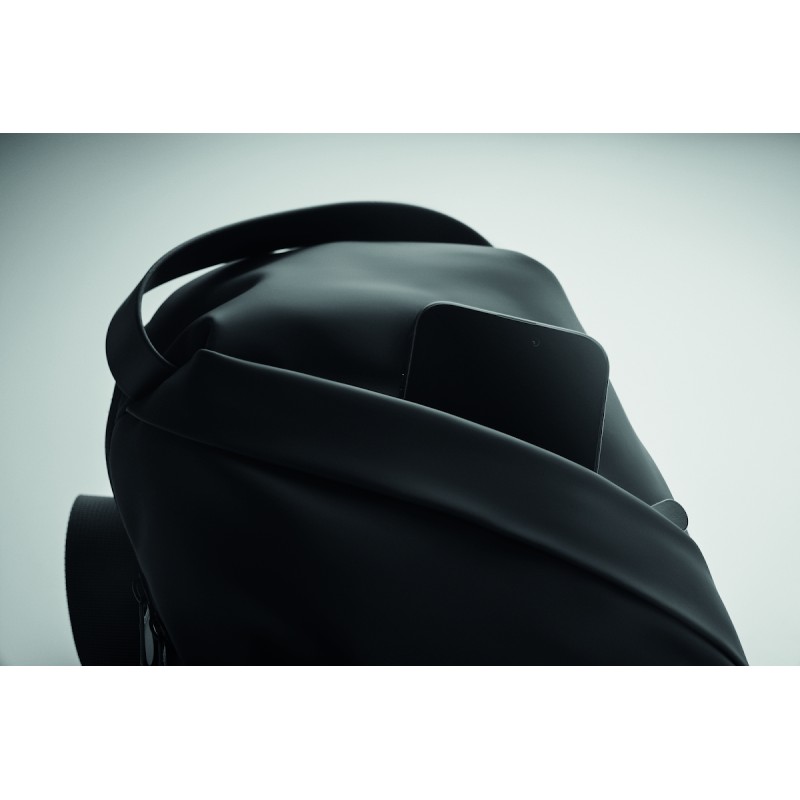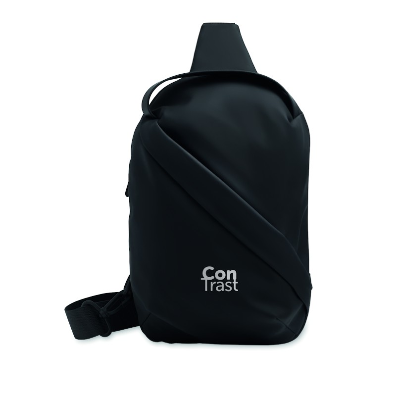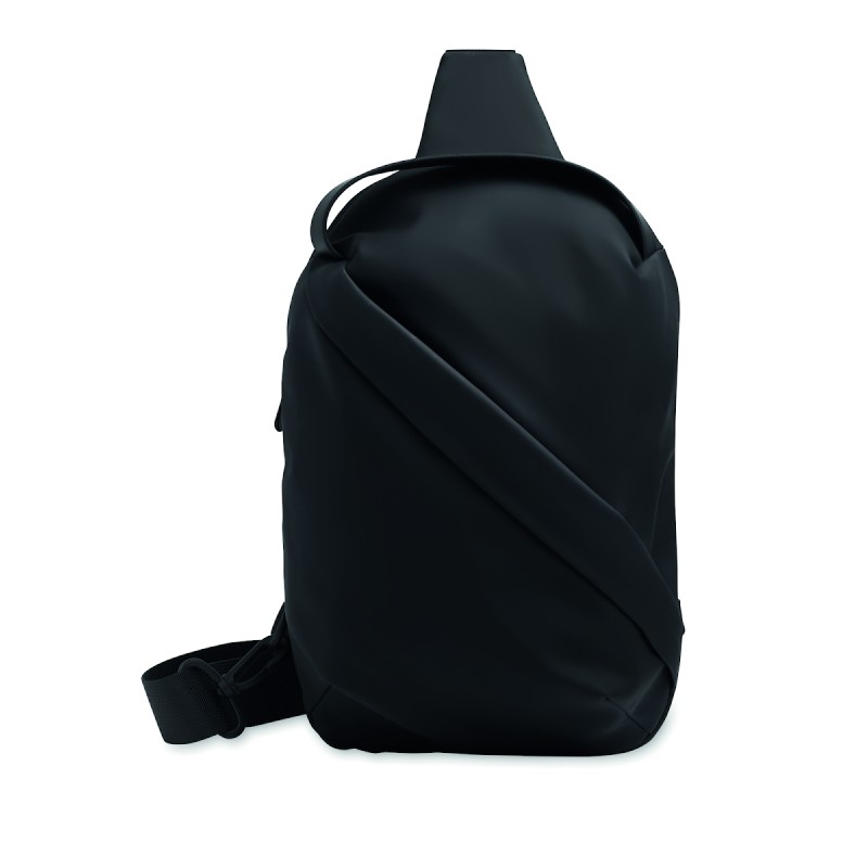 Sac cross body en PU souple avec dos renforcé et doublure en RPET 210D. Un grand compartiment principal avec poche frontale zippée.