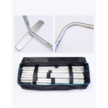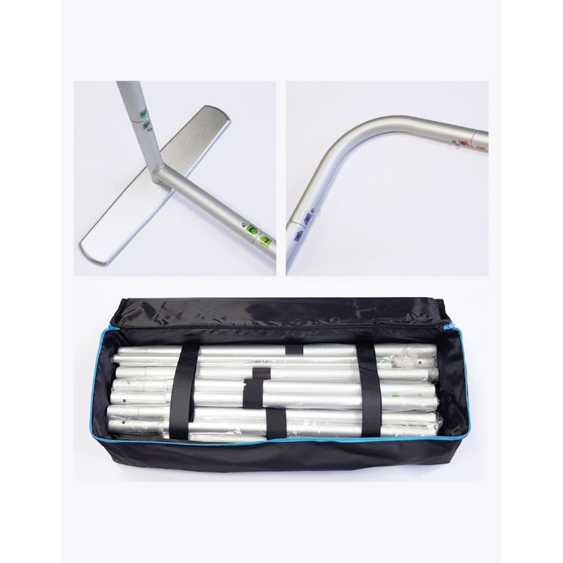Mur d'image ou photocall de 310cm de large par 245cm de haut est constitué d'une structure tubulaire en aluminium. Le montage est facile et se fait en 5 minutes : les pictogrammes de couleur permettent d'assembler la totalité de la structure. La toile en polyester 270g/m² traitée anti-feu B1 est imprimée en sublimation numérique haute définition et se monte ensuite comme une housse (chaussette). Une impression recto-verso est possible. L'ensemble est livré dans son sac de transport. Structure disponible sur stock, impression réalisée après validation de la commande