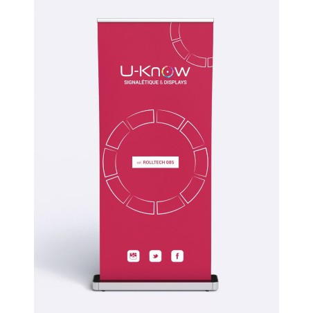 Avec ses allures de téléphone californien, ce rollup est davantage remarquable que le ROLLSPACE grâce à son revêtement noir brillant. Son poids et son envergure garantissent une excellente stabilité. Le mât télescopique est lui aussi travaillé pour faire de cet enrouleur une structure qualitative avec un fonctionnement très classique. Le sac de transport renforcé assure la protection durant l’expédition et permet la réutilisation en tout lieu en tout temps. L'affiche est réalisée dans une bâche PVC norme anti-feu B1. Structure disponible sur stock, impression réalisée au moment de la validation de la commande.