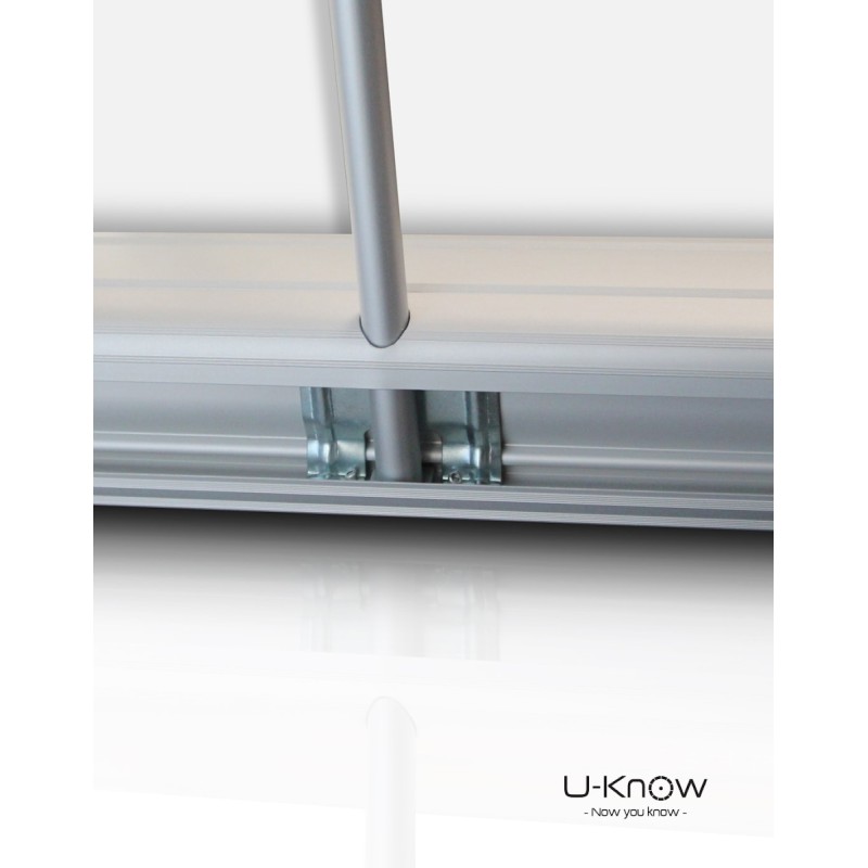 Kakémono de type rollup publicitaire et personnalisé. Structure de l'enrouleur en aluminium renforcée d’une plaque métal pour une meilleure stabilité. Fixation du mât renforcée. Affiche imprimée en France sur bâche PVC 440g/m² norme anti-feu européenne B1. Sac de transport en Oxford 300D avec protection intérieure. 6 pcs par carton + cartons individuels..Structure disponible sur stock dans notre entrepôt parisien, impression réalisée après validation de la commande