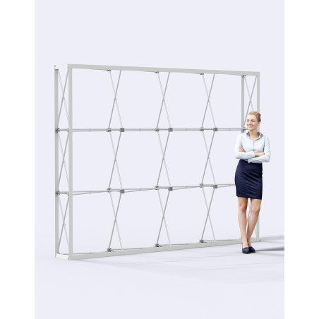 Plus large que le STD 226 (3m contre 2,3m), le STD 426 est un stand parapluie droit avec retours aussi appelé photocall. La structure en aluminium se déploie en 2 secondes. La toile polyester 230g/m² traitée anti-feu norme B1, est fixée par des bandes velcro sur toute sa bordure. L’impression est réalisée en sublimation numérique haute définition. L’ensemble est livré entièrement assemblé dans un sac de transport inclus. Trolley de transport en option..Structure disponible sur stock dans notre entrepôt parisien, impression réalisée après validation de la commande