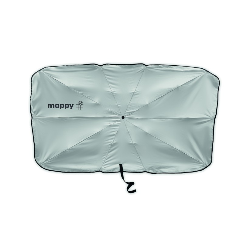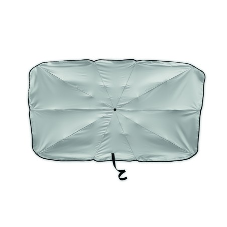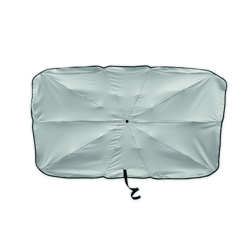Pare soleil de voiture pour pare-brise en pongé 190T avec doublure argentée sur une face. Ouverture/fermeture manuelle.