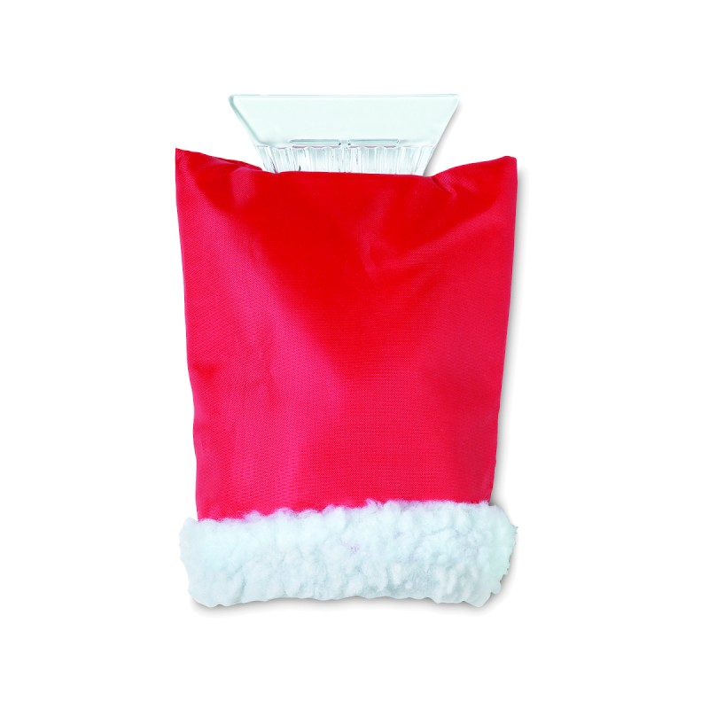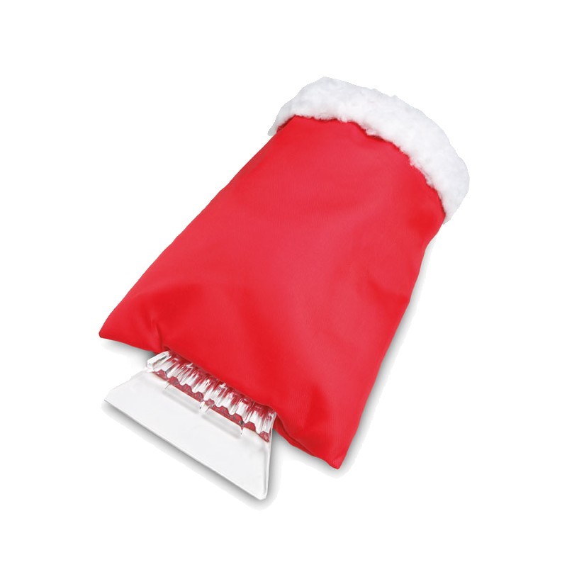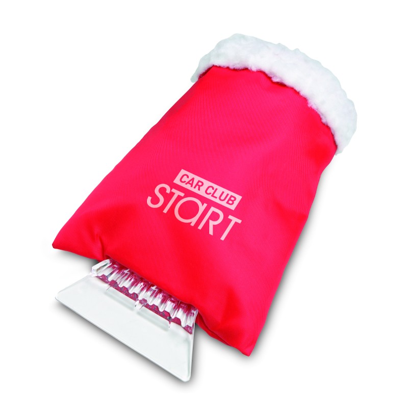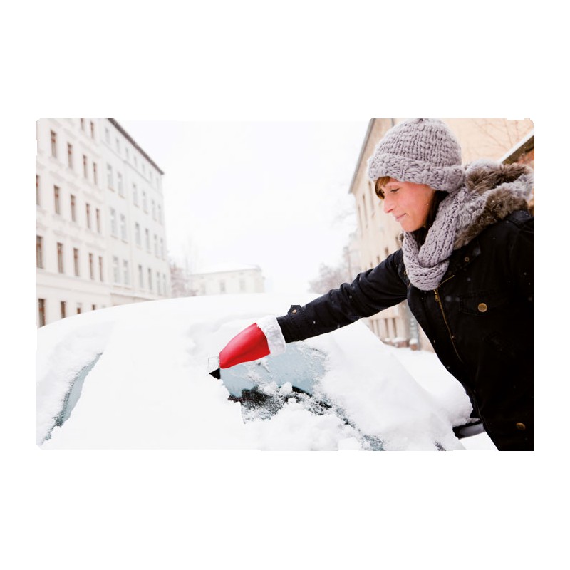 Grattoir à glace en plastique pour voiture avec gant de protection en mouton synthétique.