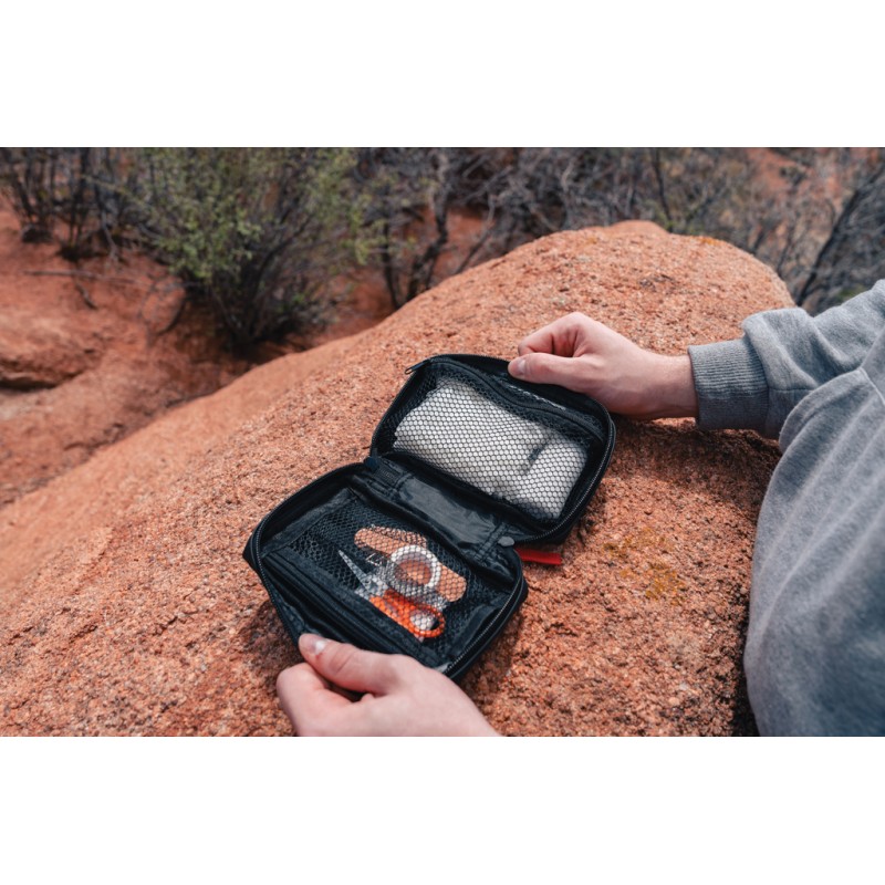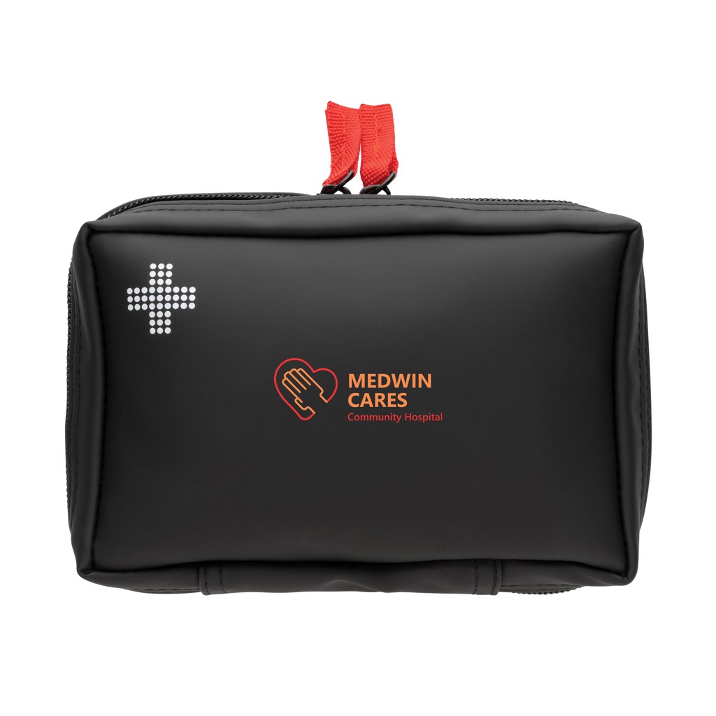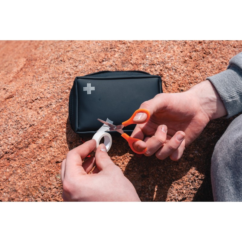 Trousse de secours de luxe en nubuck-PU déperlant, à la fois élégante et pratique. Le matériau est facile à nettoyer et repousse l'eau, ce qui le rend parfait pour une utilisation en déplacement 1pc bandage PBT, 1pc bandage auto- adhésif et bandage de compression auto- adhésif, 1pc bandage triangle , 1pc Masque de bouche à bouche, 1 paire de gants, 1pc ruban adhésif, 3pcs épingle, 1pc ciseaux, 10pcs sparadraps et 4pcs tampons d'alcool ; ; Tout le contenu est conforme aux directives sur les dispositifs médicaux : 93/42/CEE et UE (2017/745), EN ISO 13485:2016 ; Tout le contenu (à l'exception des épingles et des ciseaux) est emballé dans un sac en papier portant toutes les inscriptions obligatoires requises par l'UE, telles que "Date d'expiration, CE, numéro de lot". Contenu recyclé total : 24 % sur la base du poids total de l'article.