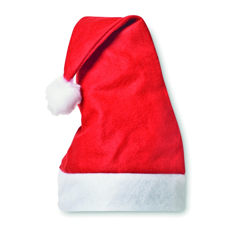 Chapeau de noël traditionnel avec pompon blanc. Non-tissé.