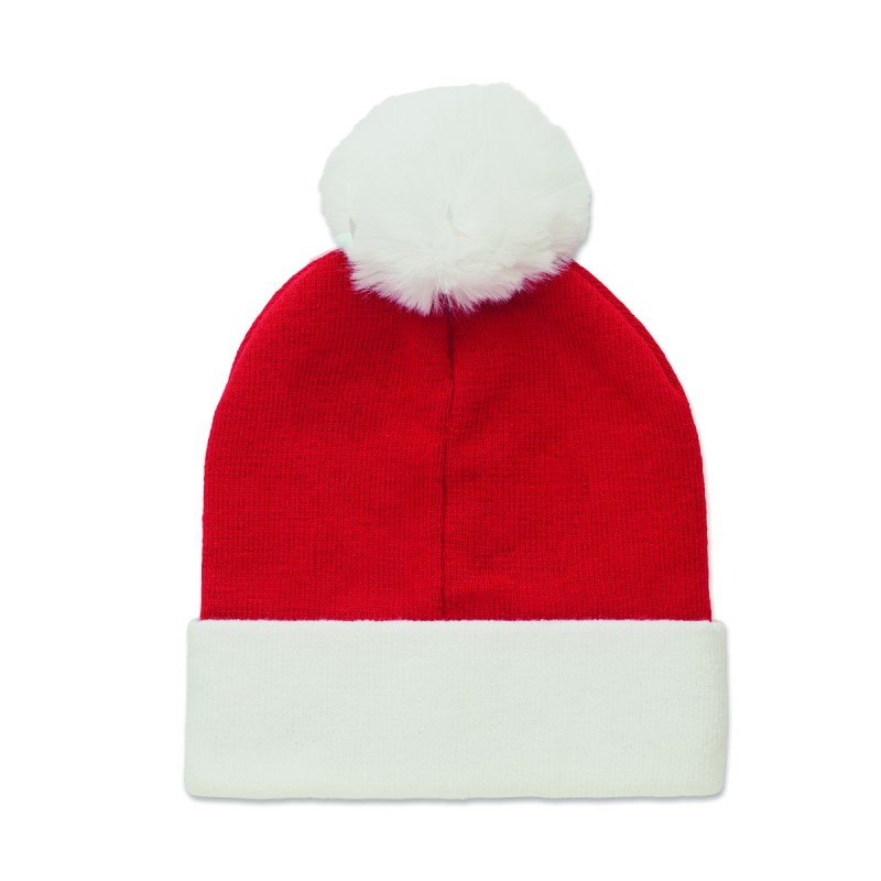 Bonnet de Noël tricoté avec revers et pompon en acrylique.