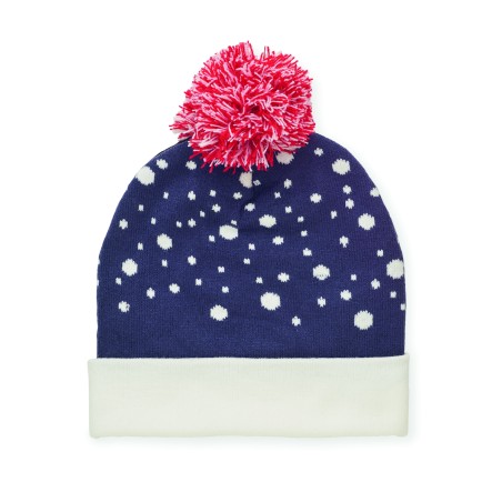 Bonnet de Noël tricoté avec revers et pompon en acrylique doux et extensible.