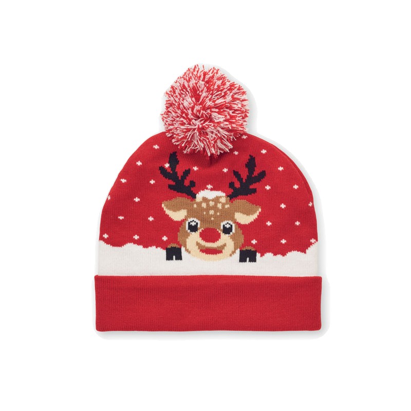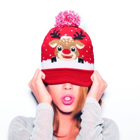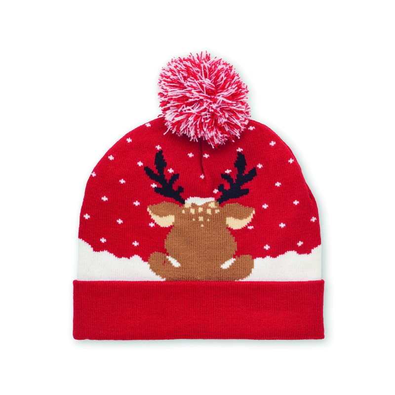 Bonnet de Noël tricoté avec revers et pompon en acrylique doux et extensible.